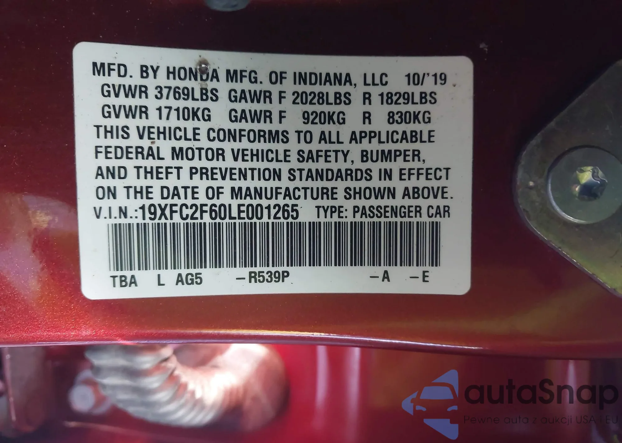 • VIN 19XFC2F60LE001265