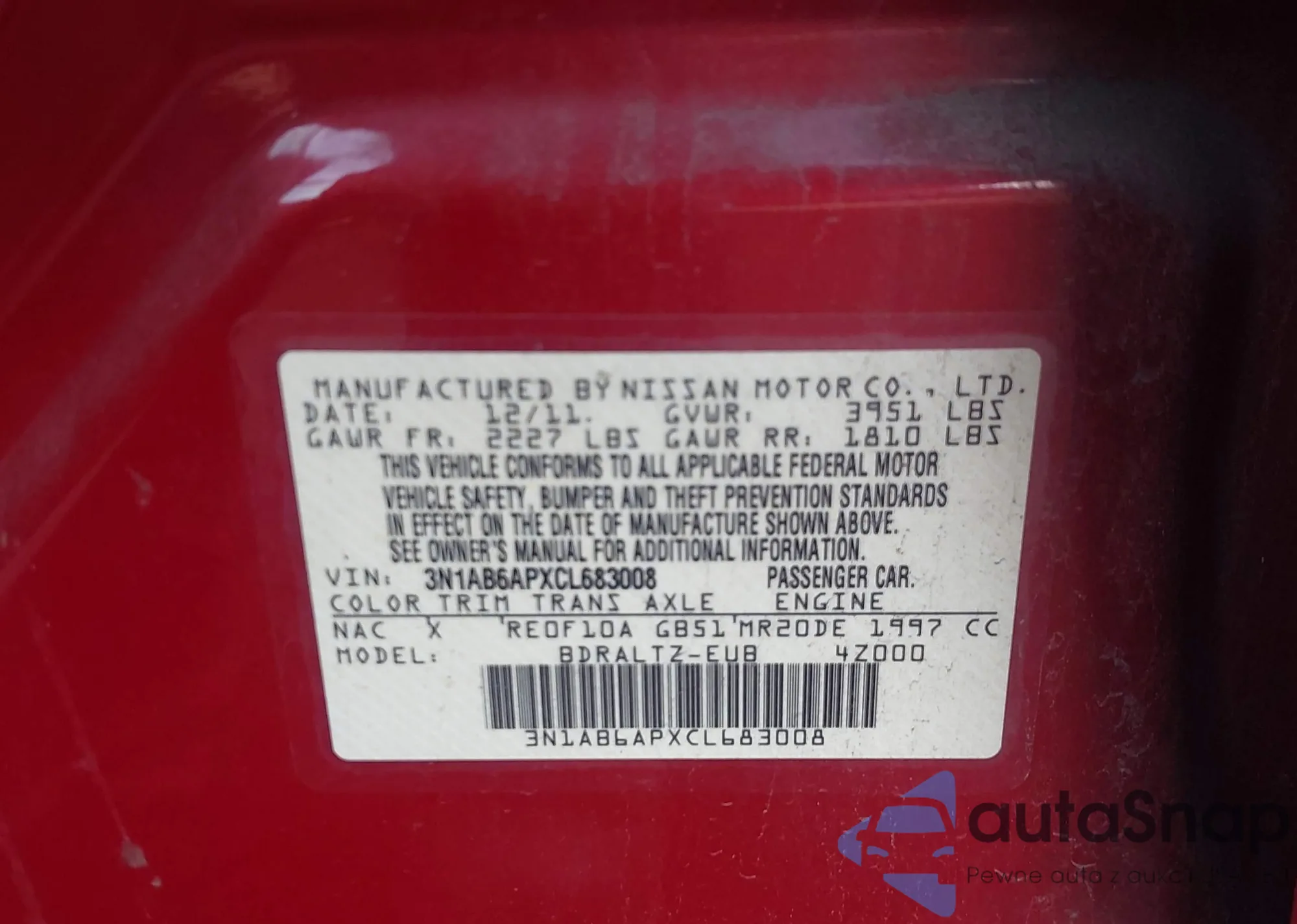 • VIN 3N1AB6APXCL683008