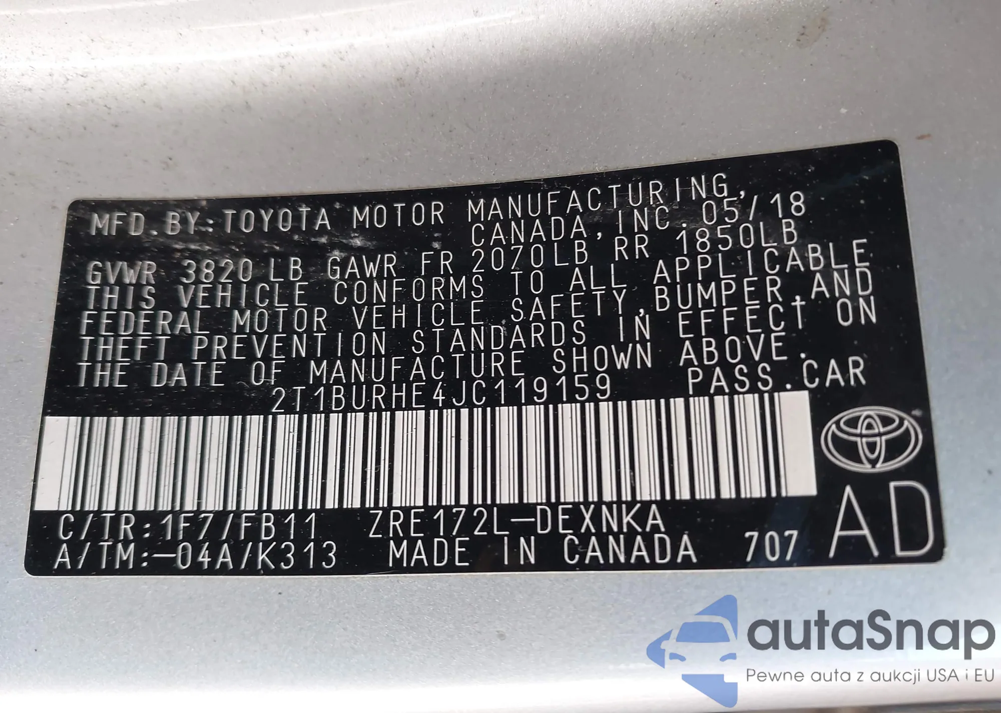 • VIN 2T1BURHE4JC119159