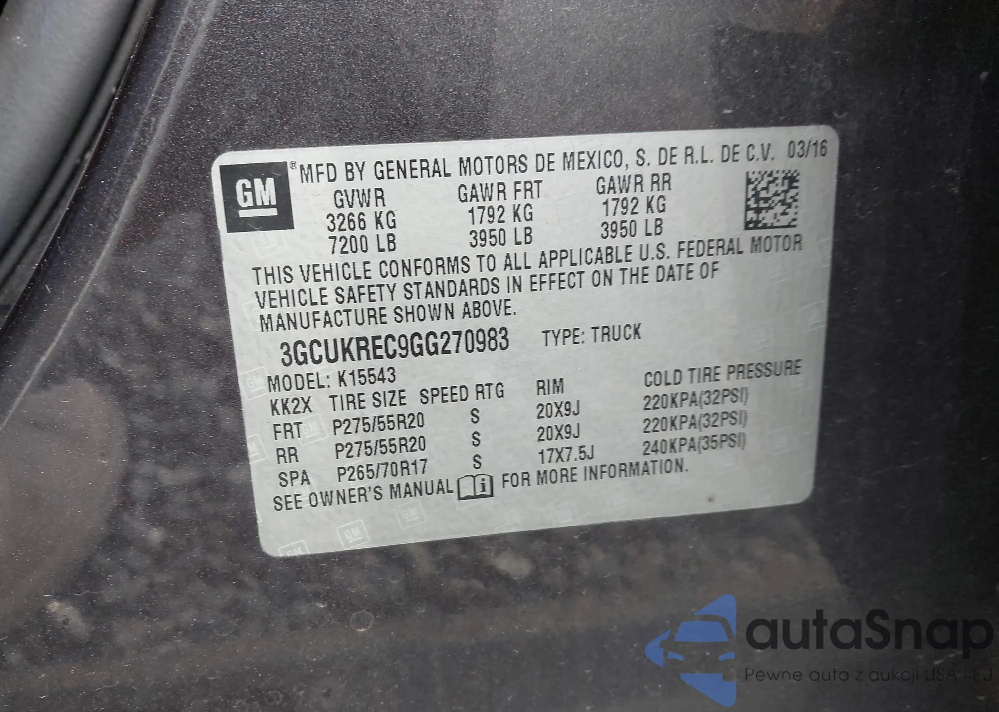 LOT: 43723440 VIN: 1GNSKKE35BR242306