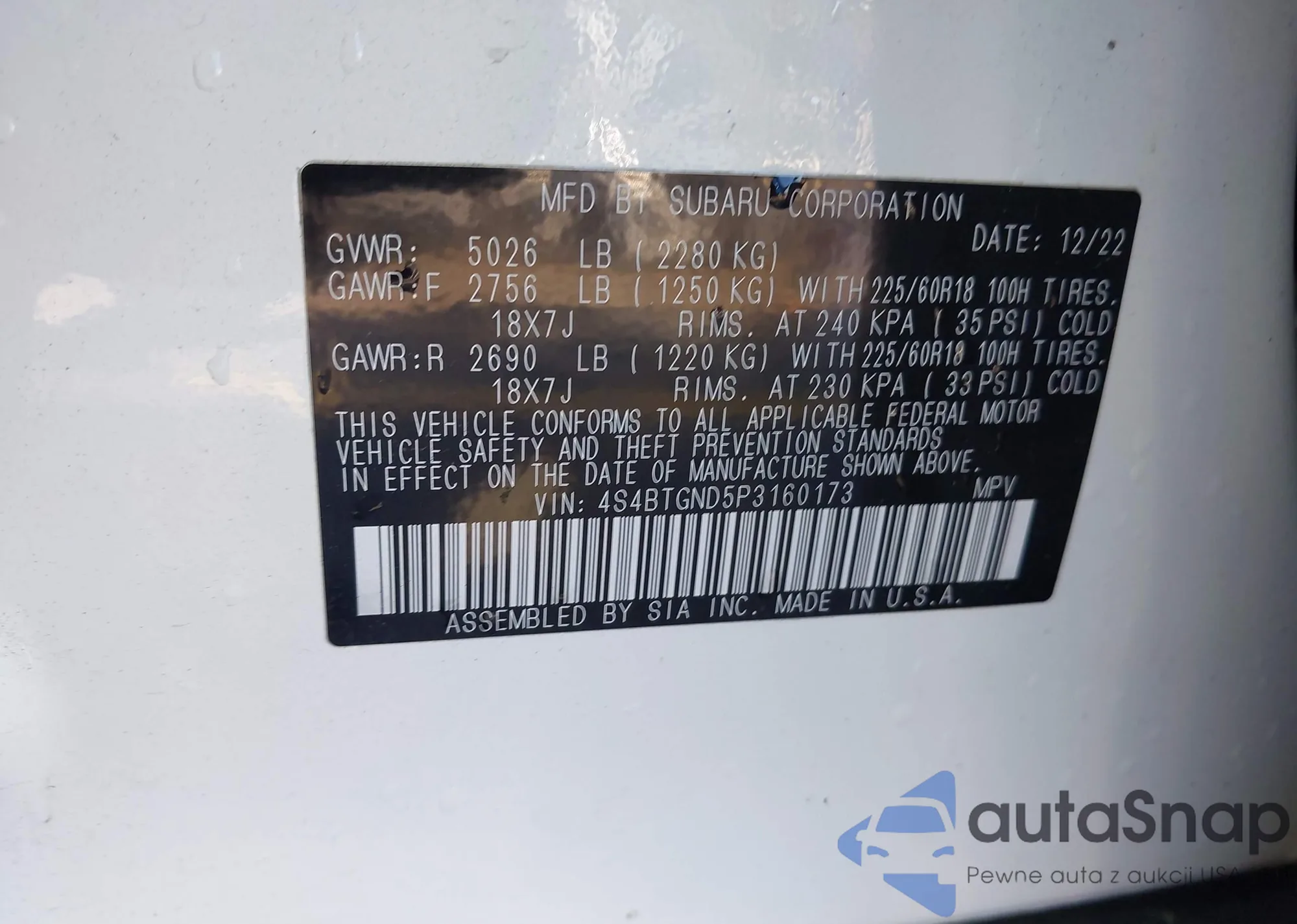 LOT: 43517944 VIN: 4S4BTGND5P3160173