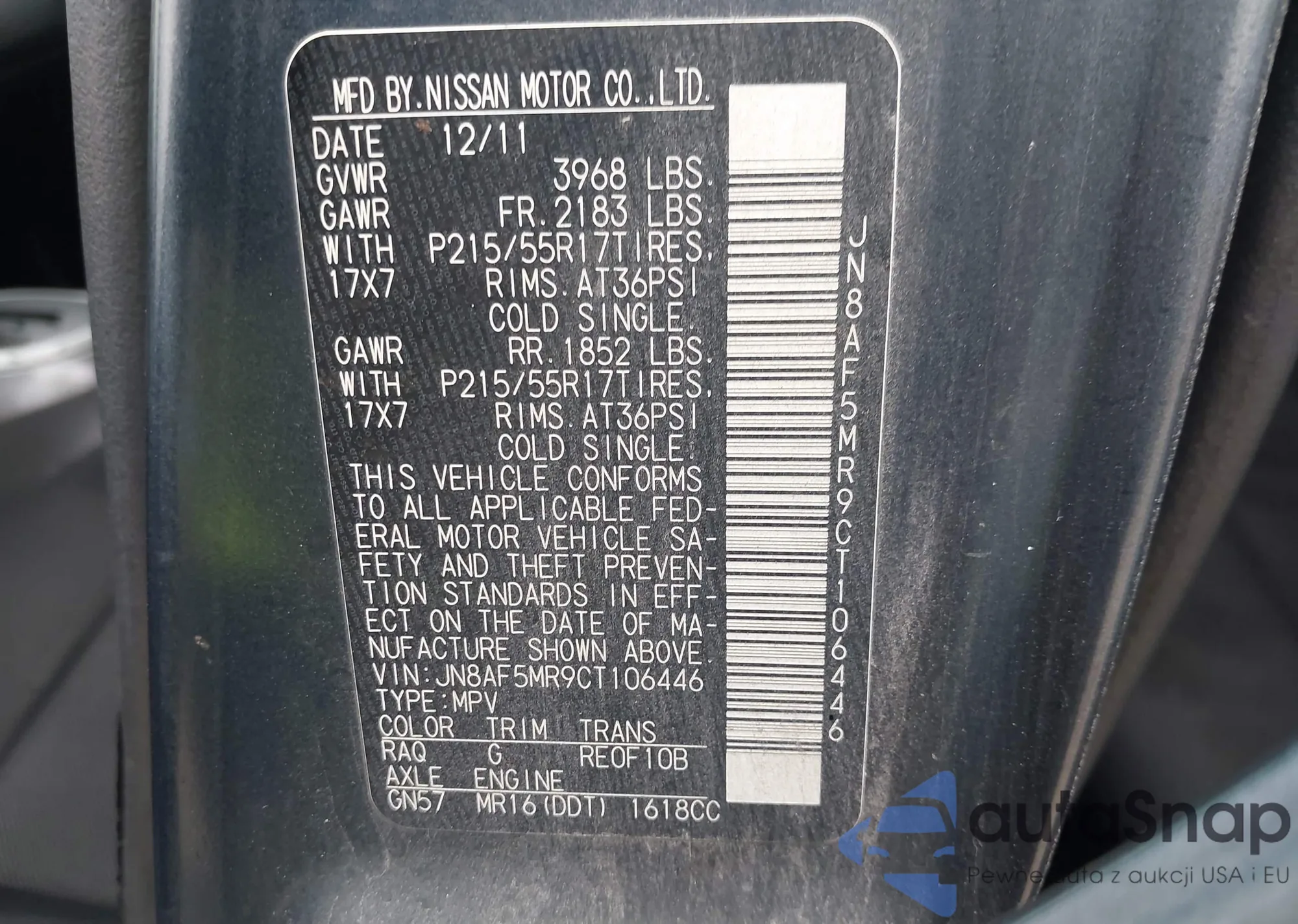 • VIN JN8AS5MV5EW711428