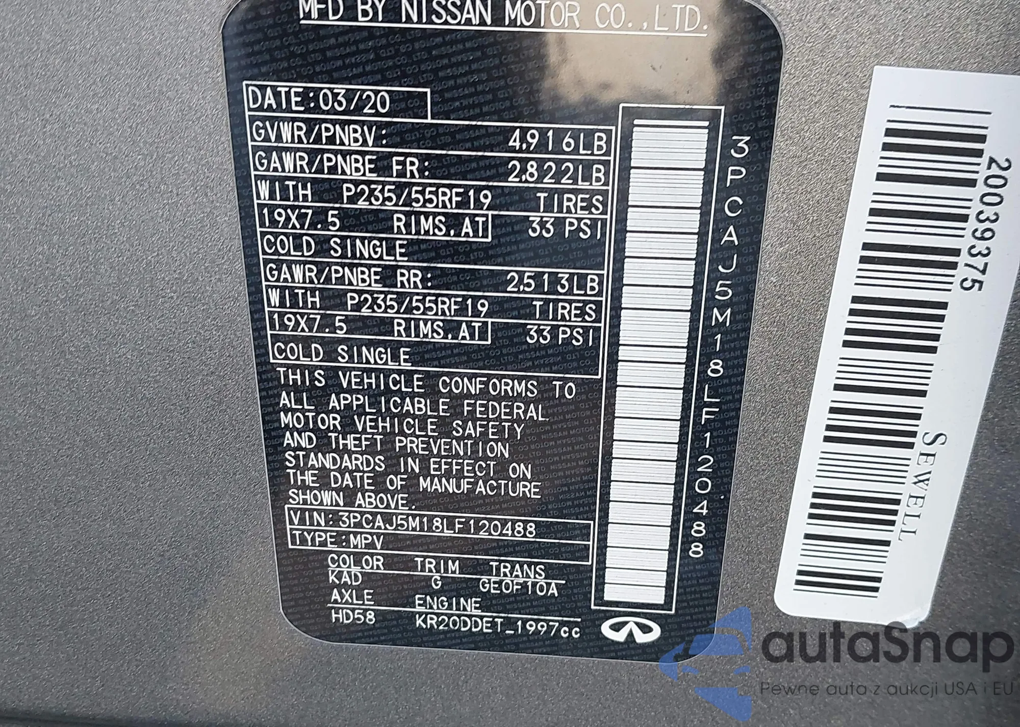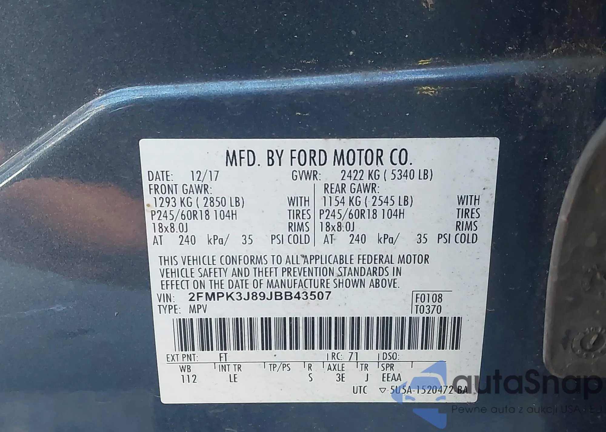 • VIN 2FMPK3J89JBB43507