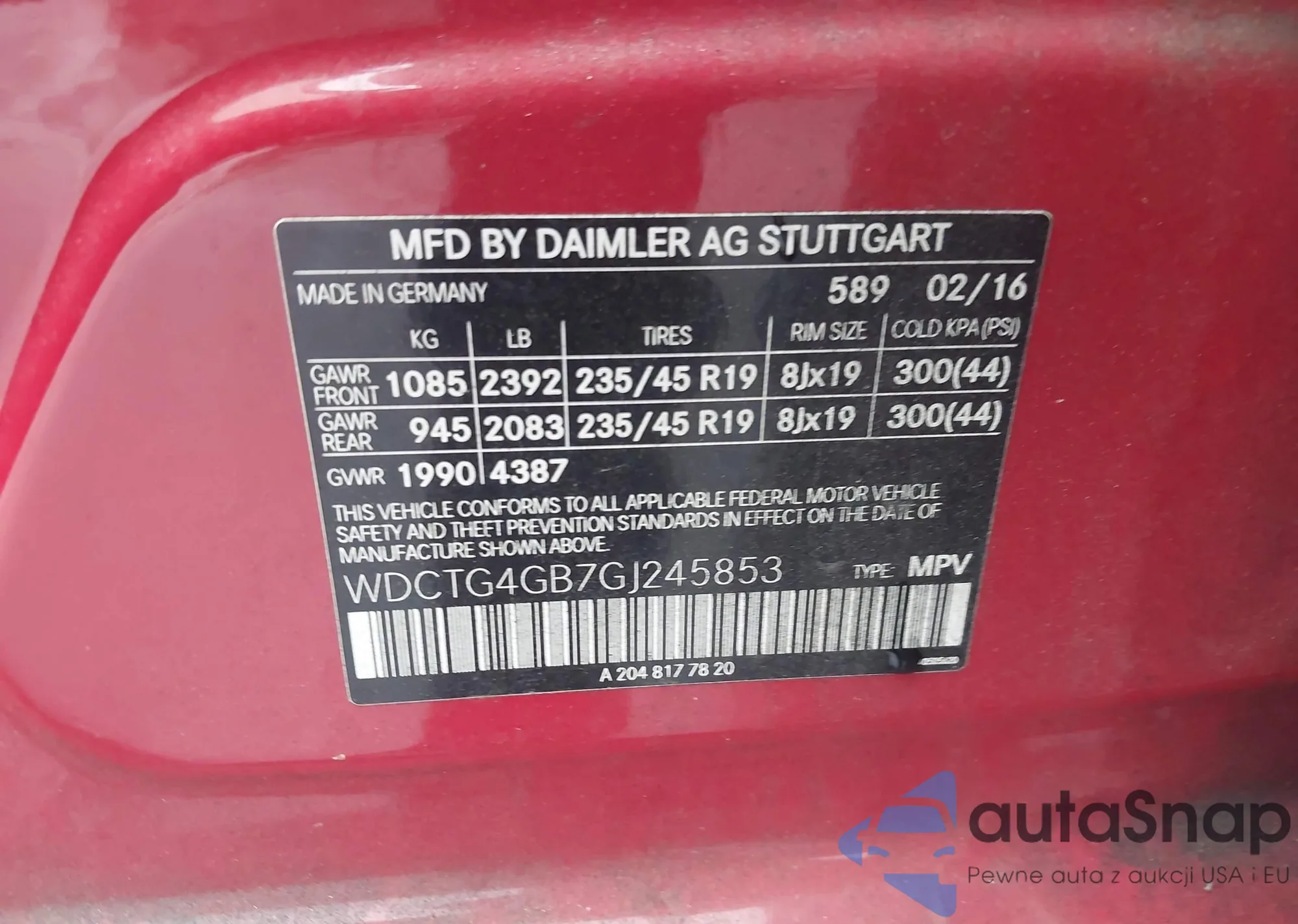 • VIN WDCTG4GB7GJ245853