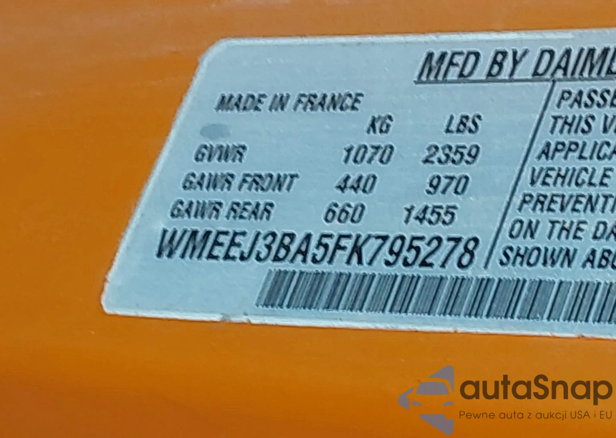 LOT: 43822532 VIN: WMEEJ3BA5FK795278