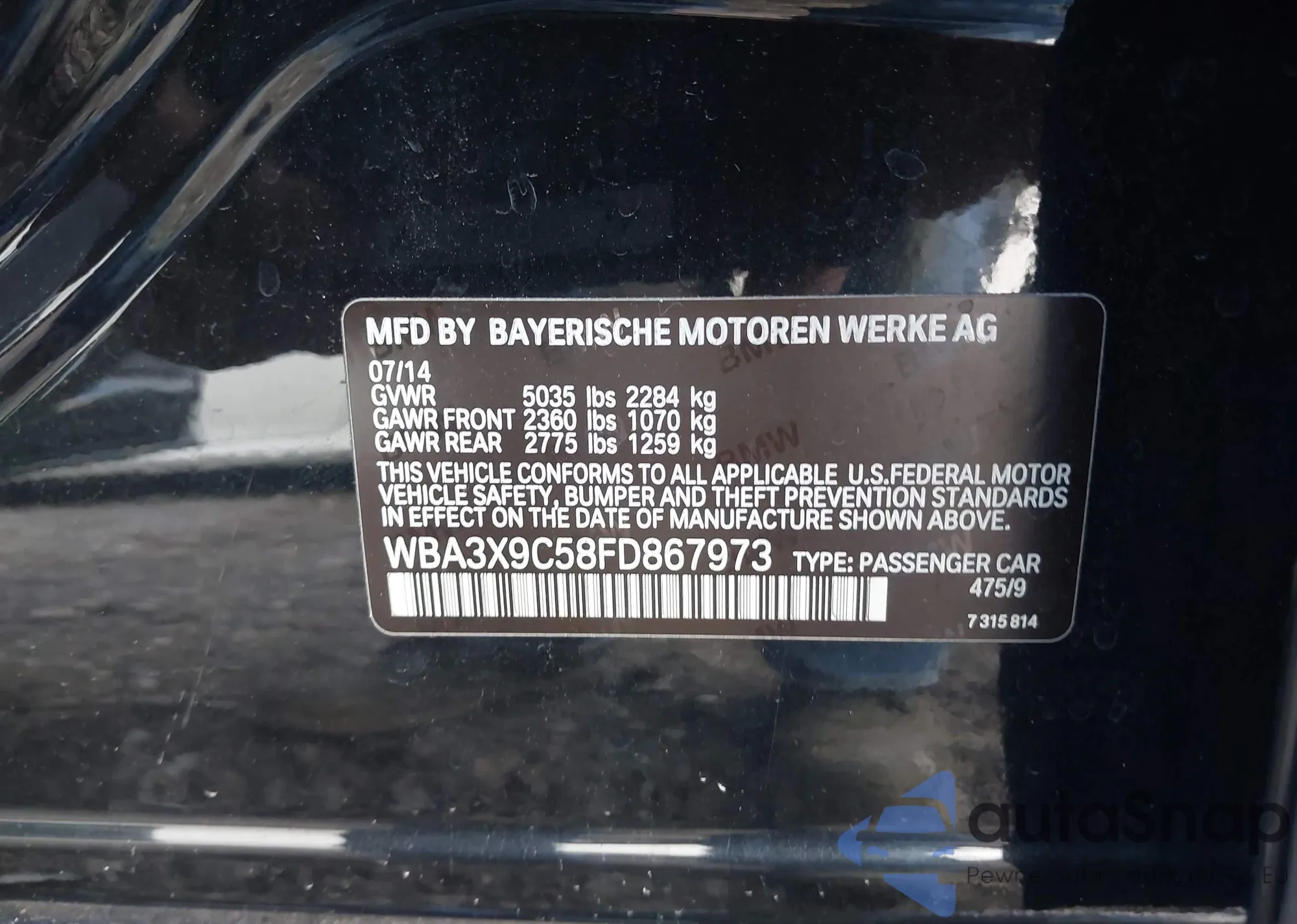 • VIN WBA3X9C58FD867973