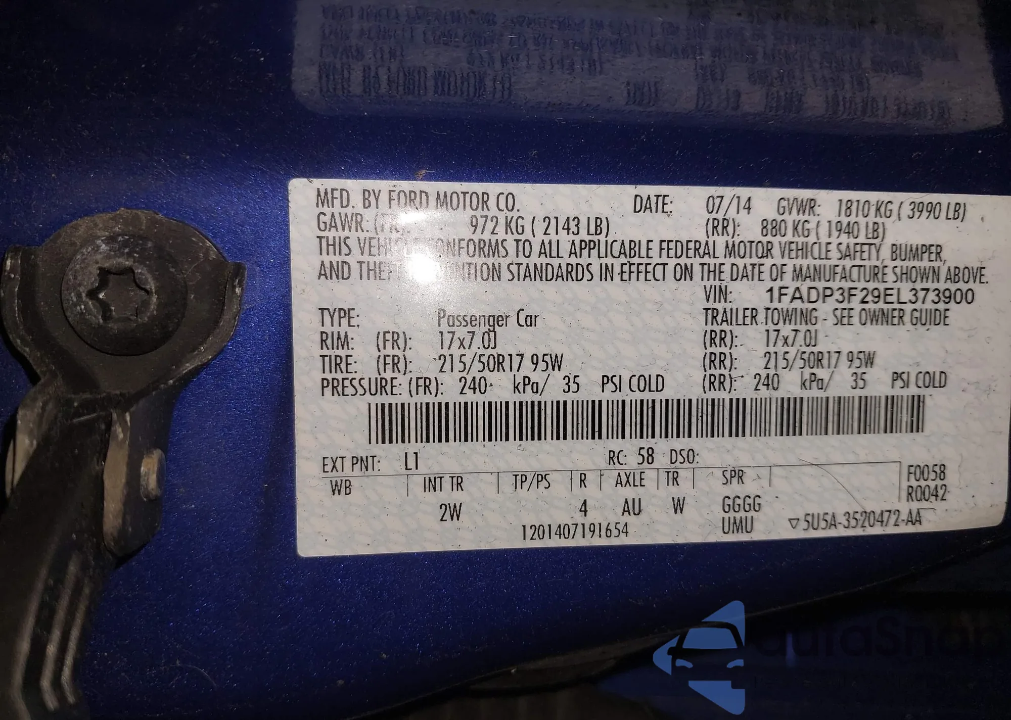 LOT: 43445327 VIN: 1FADP3F29EL373900