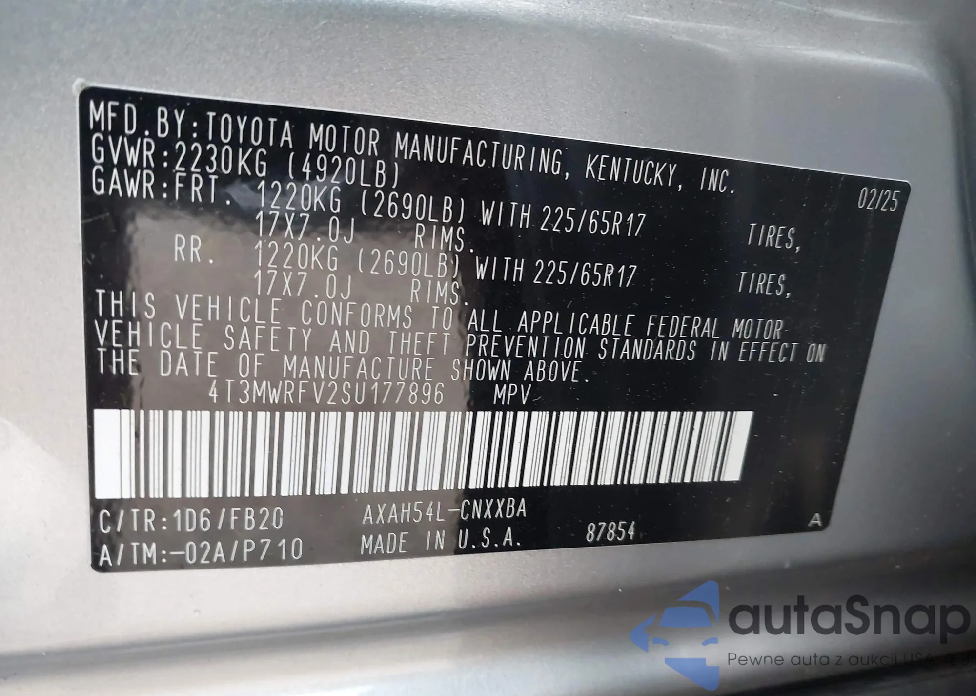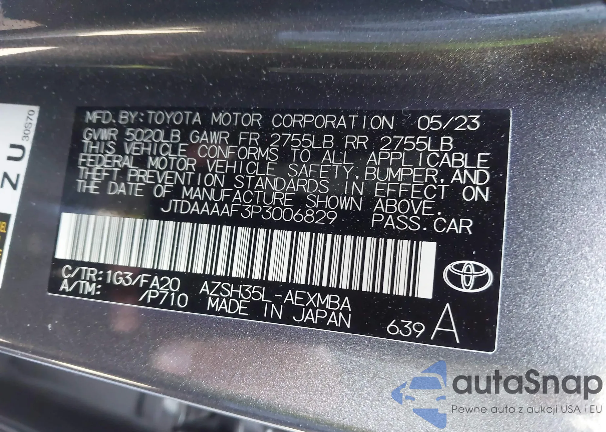 LOT: 43411266 VIN: JTDEPMAEXMJ163399