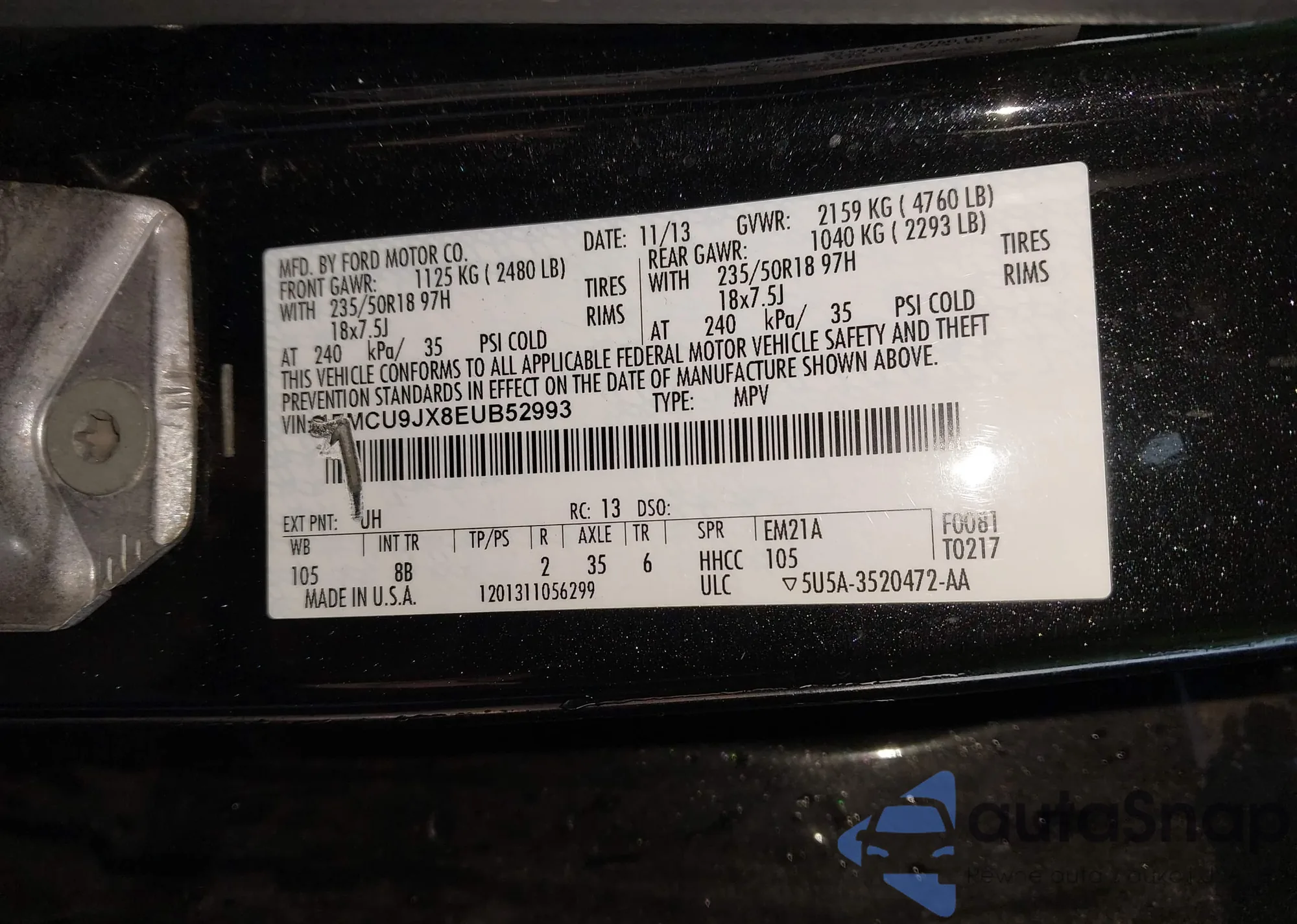 • VIN 1FMCU9JX8EUB52993