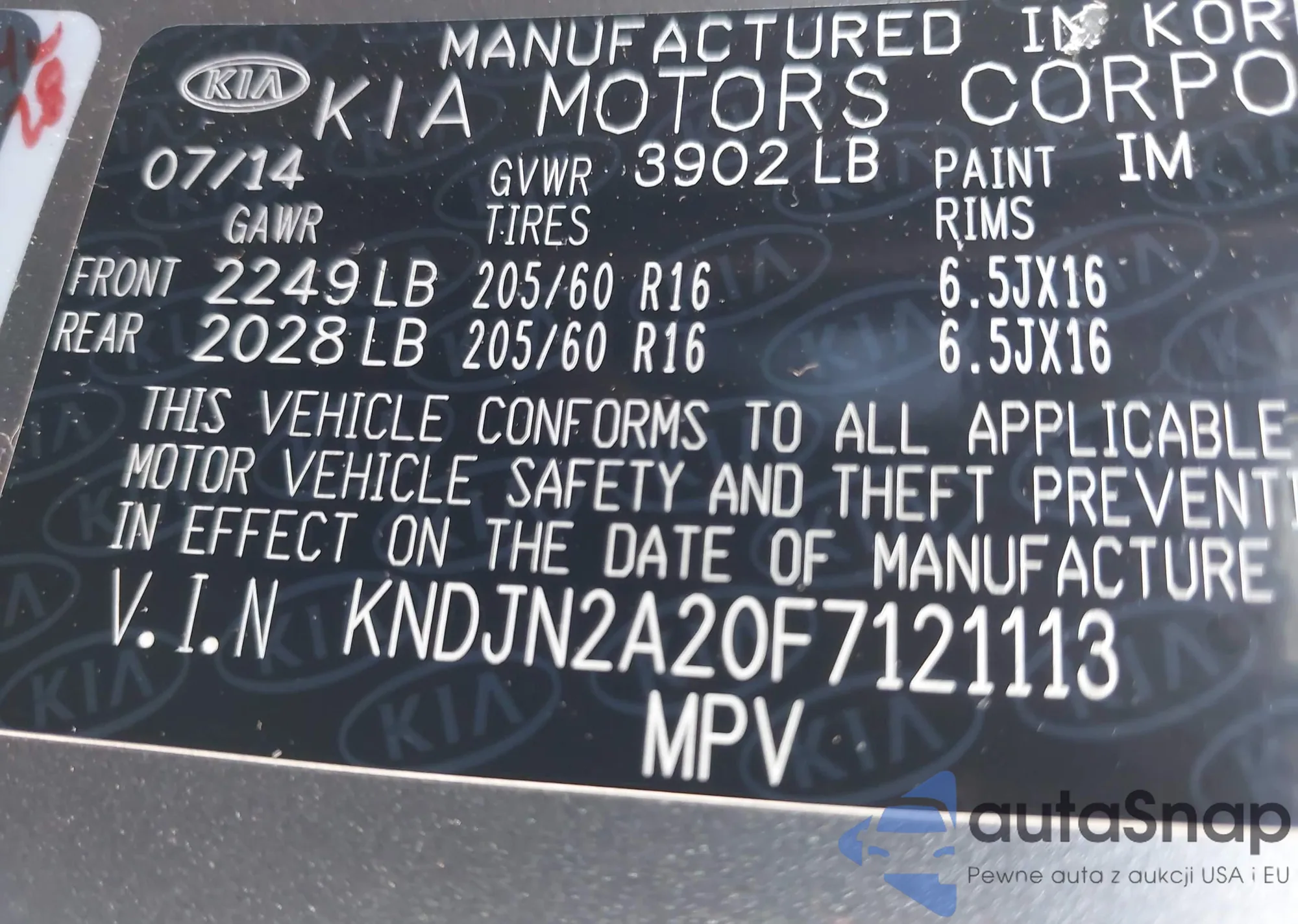 LOT: 43937577 VIN: KNDJN2A20F7121113