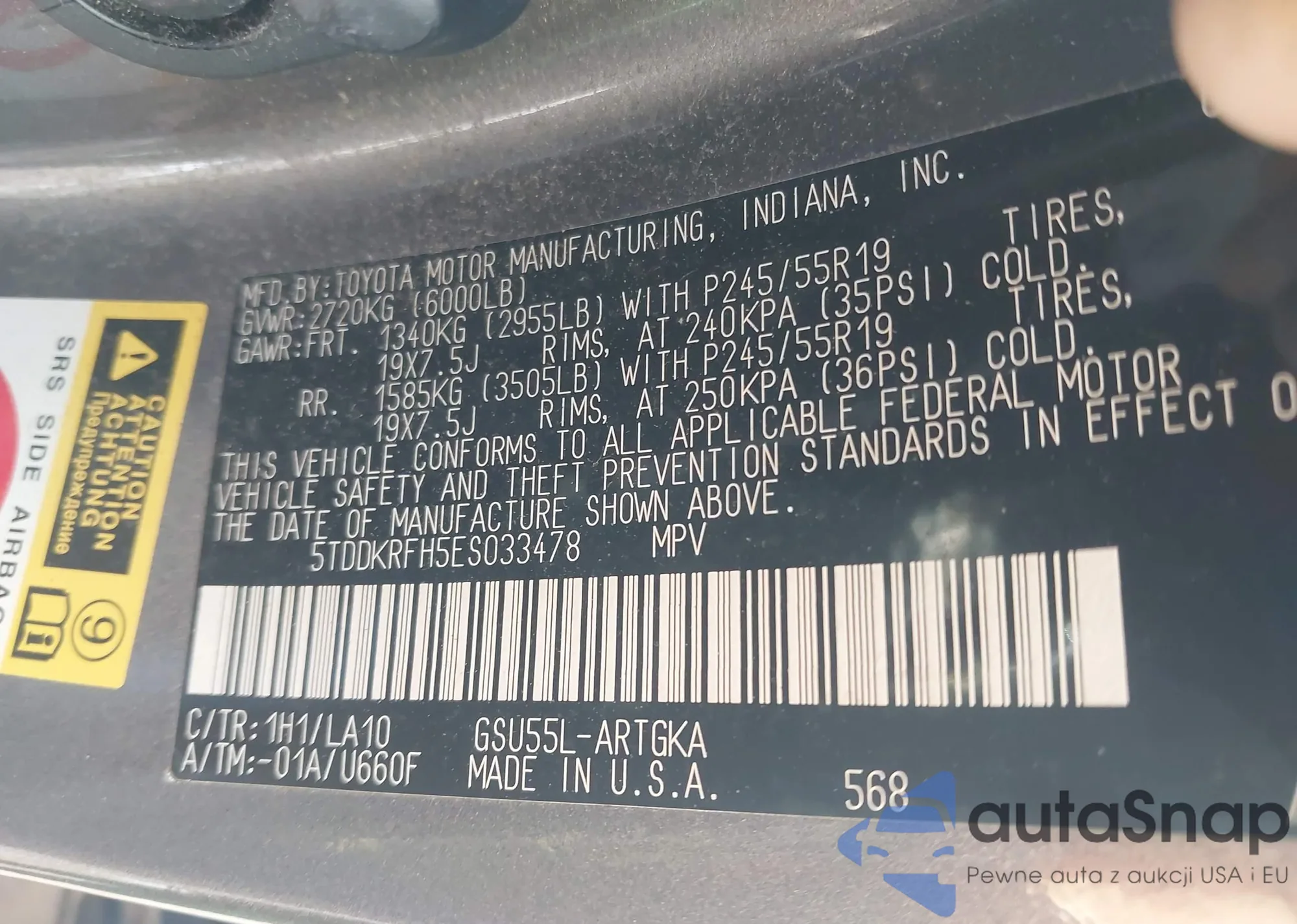 • VIN 5TDDKRFH5ES033478