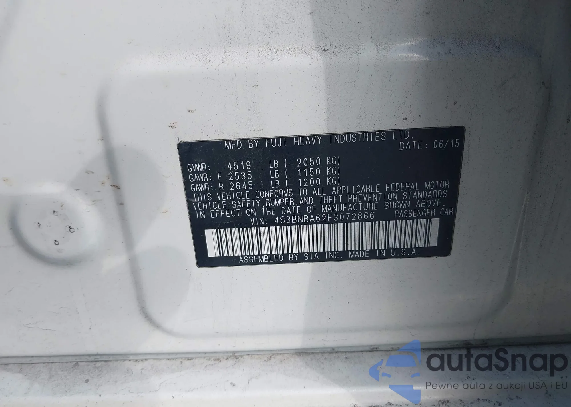 LOT: 43540977 VIN: 4S3BNBA62F3072866