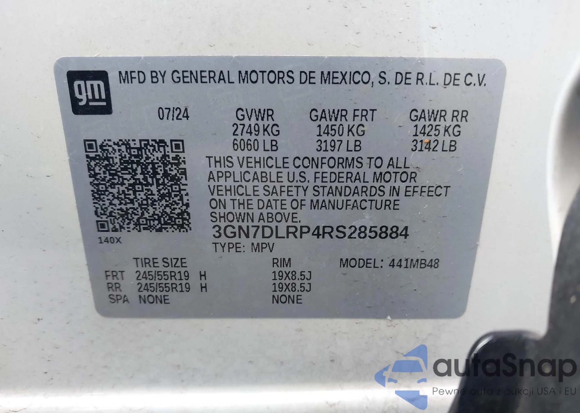 • VIN 3GN7DLRP4RS285884