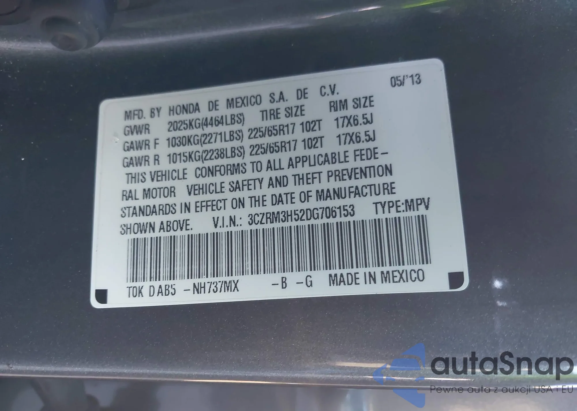 • VIN 3CZRM3H52DG706153