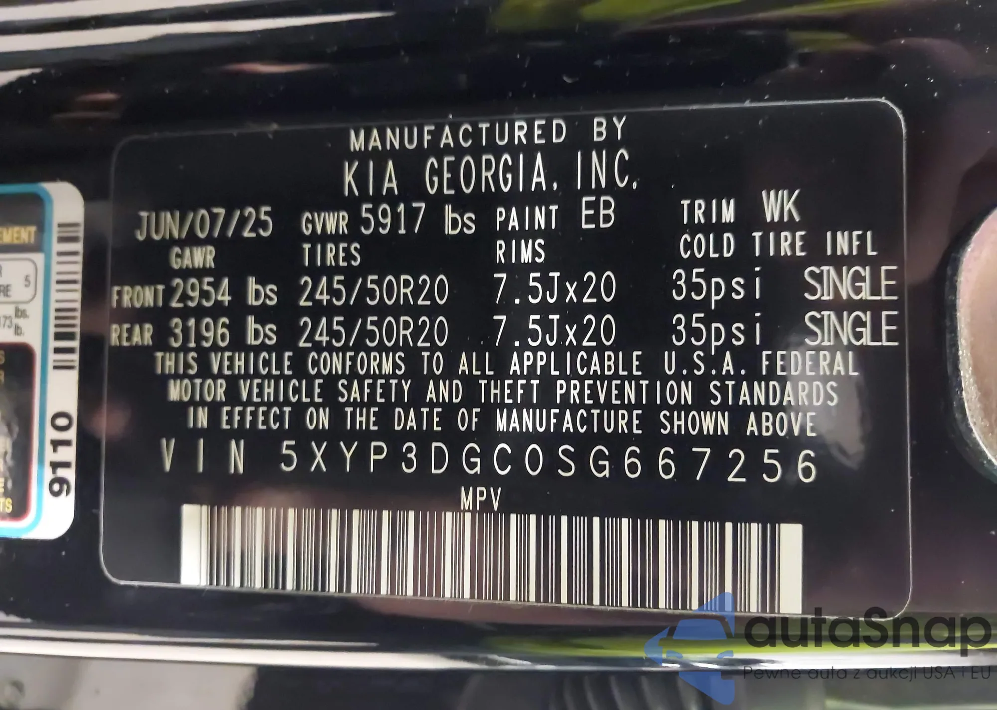 • VIN 5XYP3DGC0SG667256