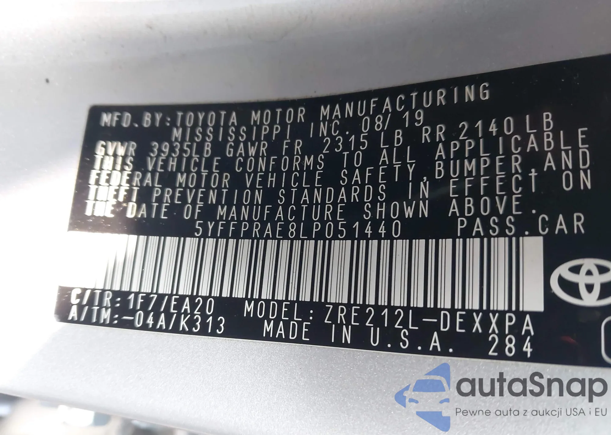 • VIN JTMC1RFV7PD102920