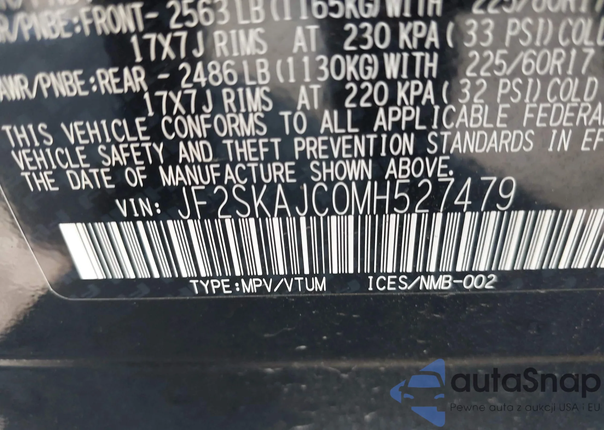 • VIN JF2SKAJC0MH527479
