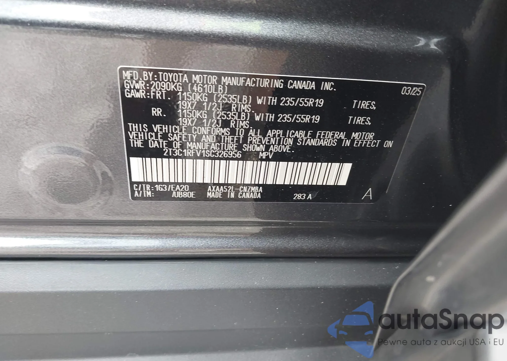 LOT: 43631746 VIN: 2T3C1RFV1SC326956