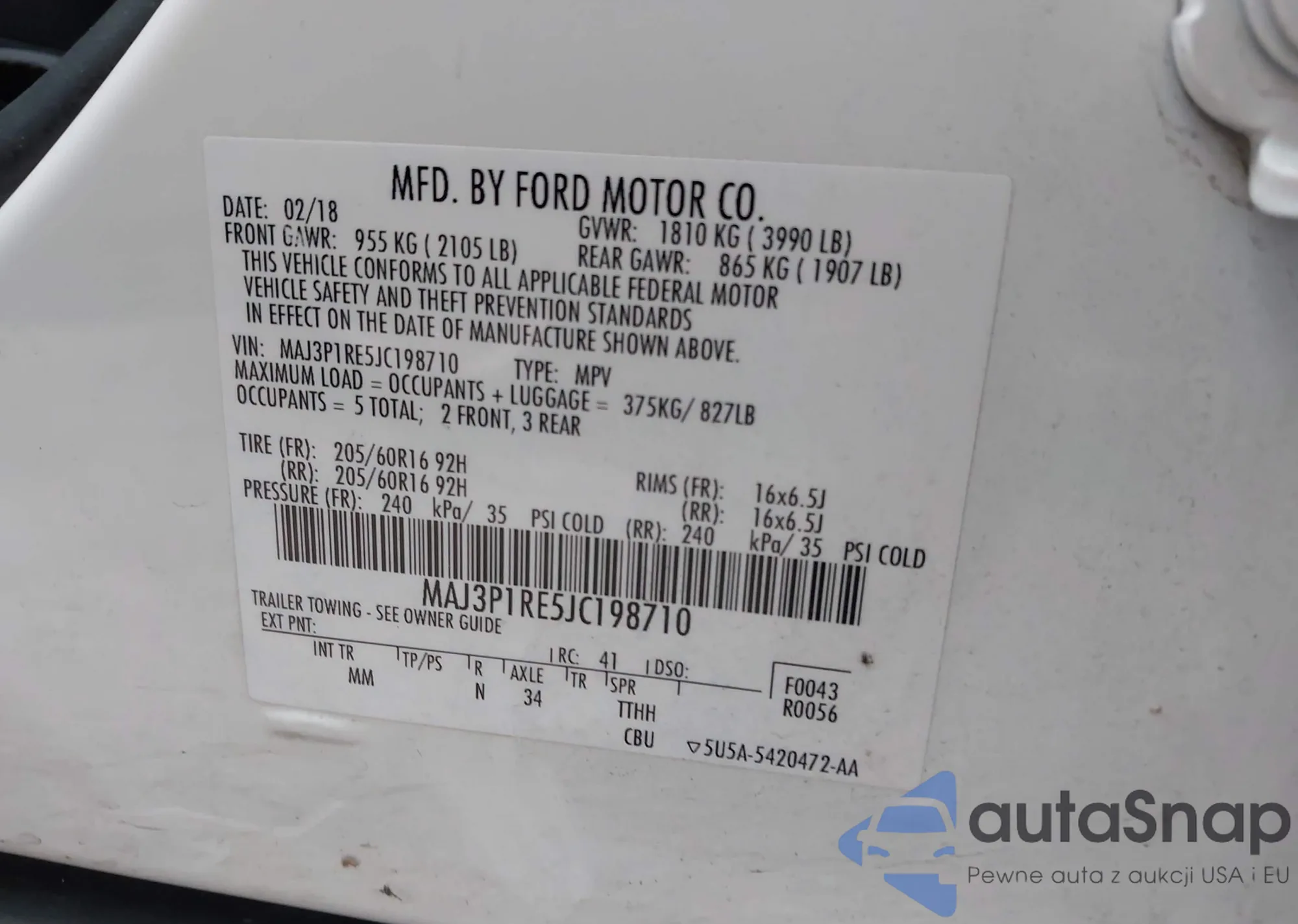 LOT: 43641173 VIN: MAJ3P1RE5JC198710