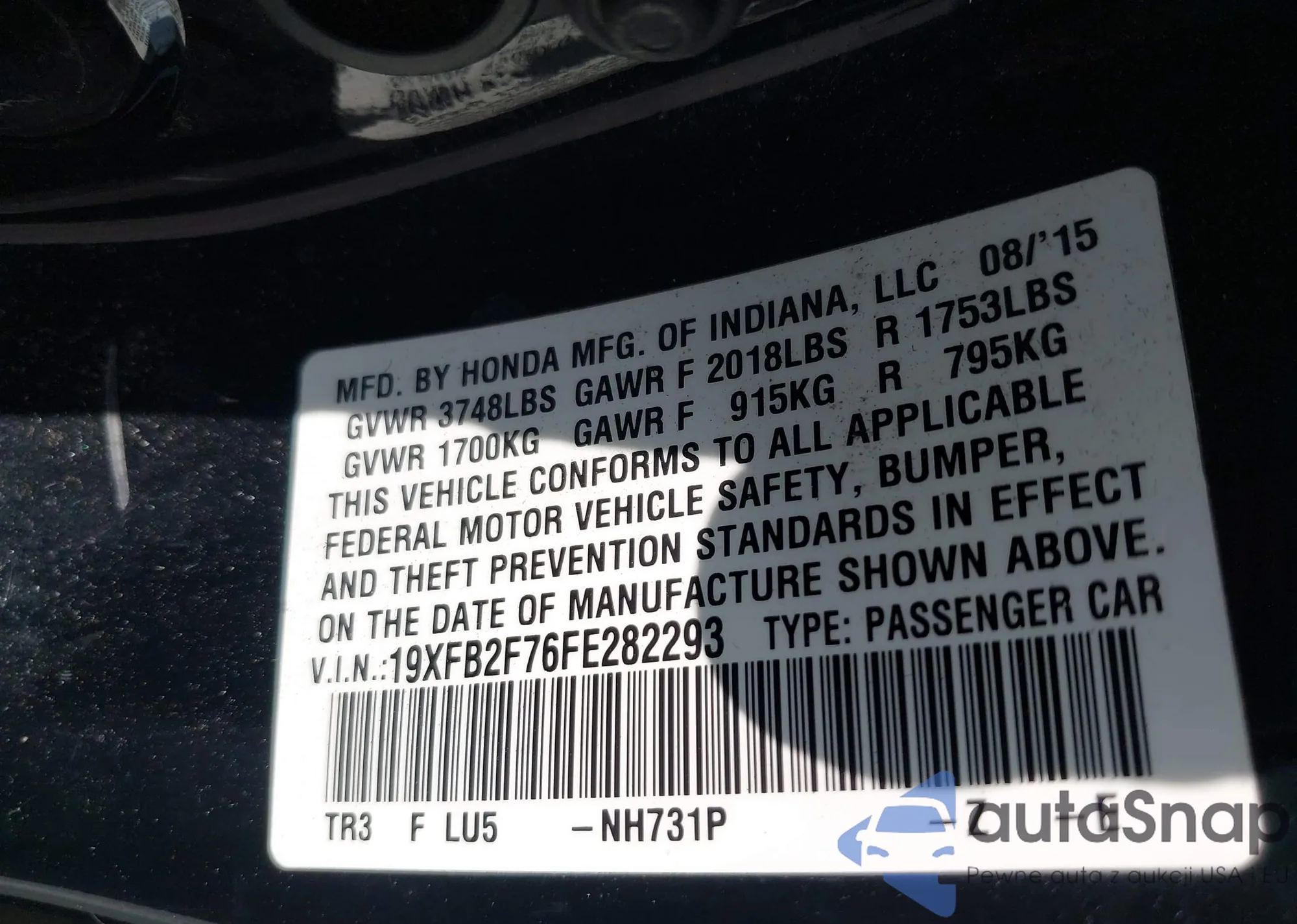 • VIN 5FNRL5H38GB104225