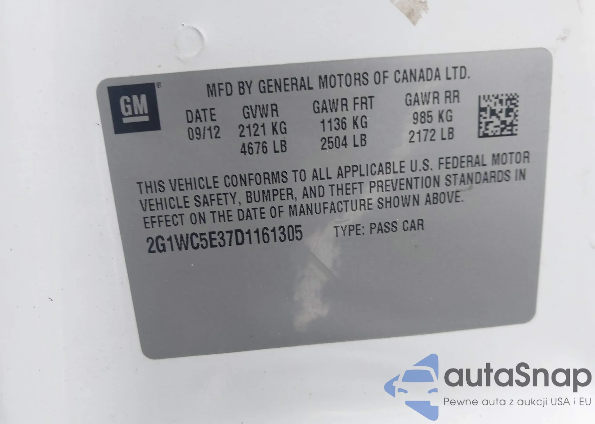 • VIN 1G4GC5ER5DF126685