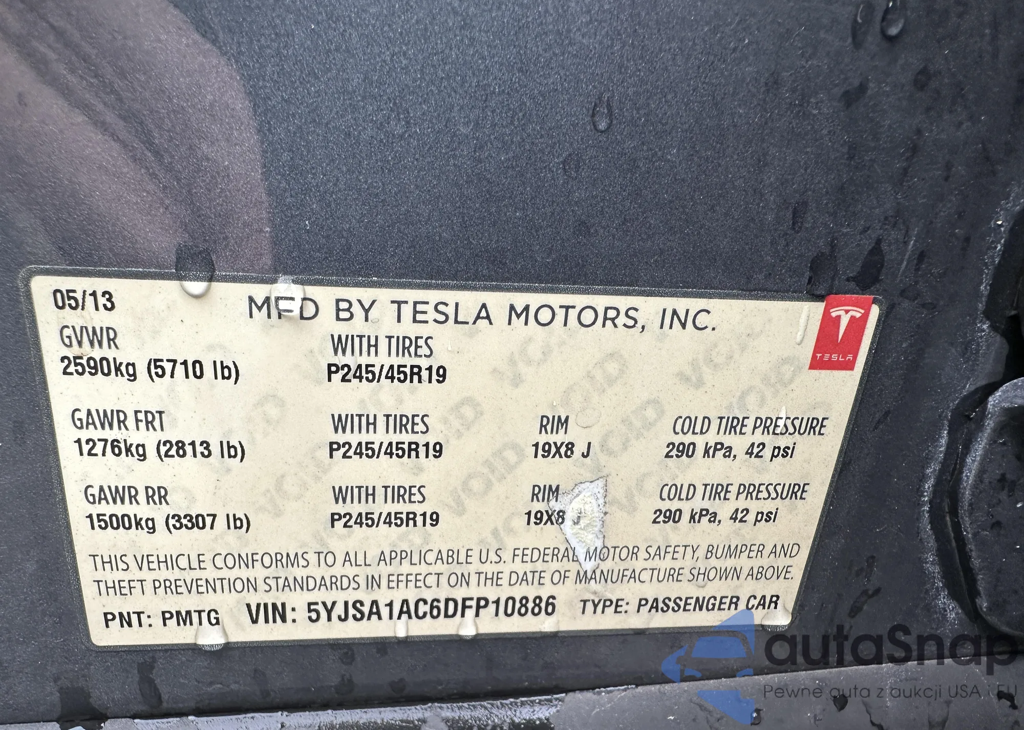 • VIN 5YJSA1AC6DFP10886