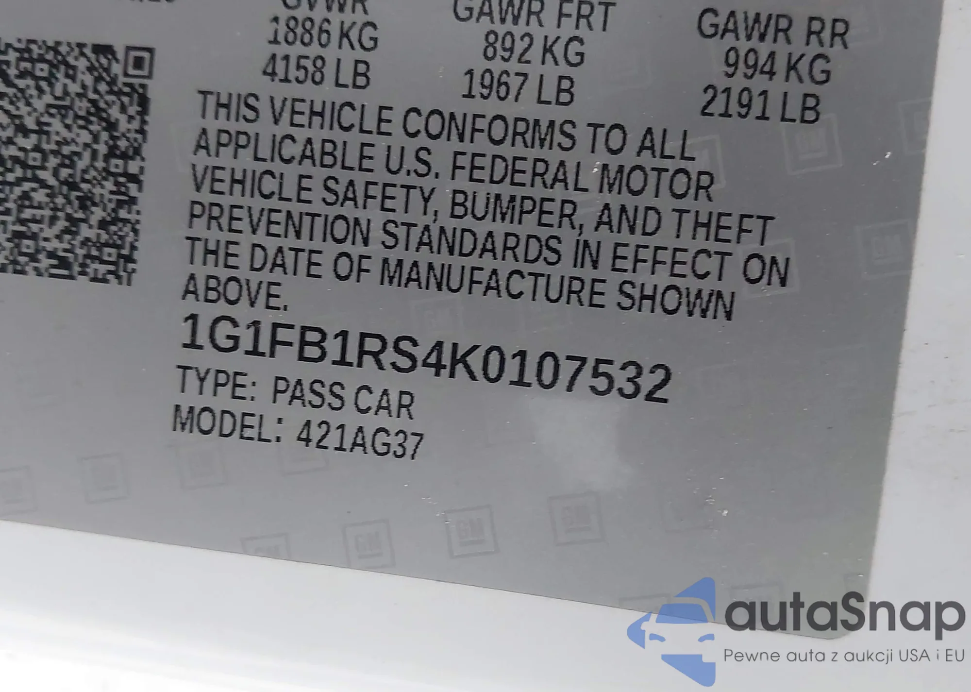 • VIN 1G1FB1RS4K0107532