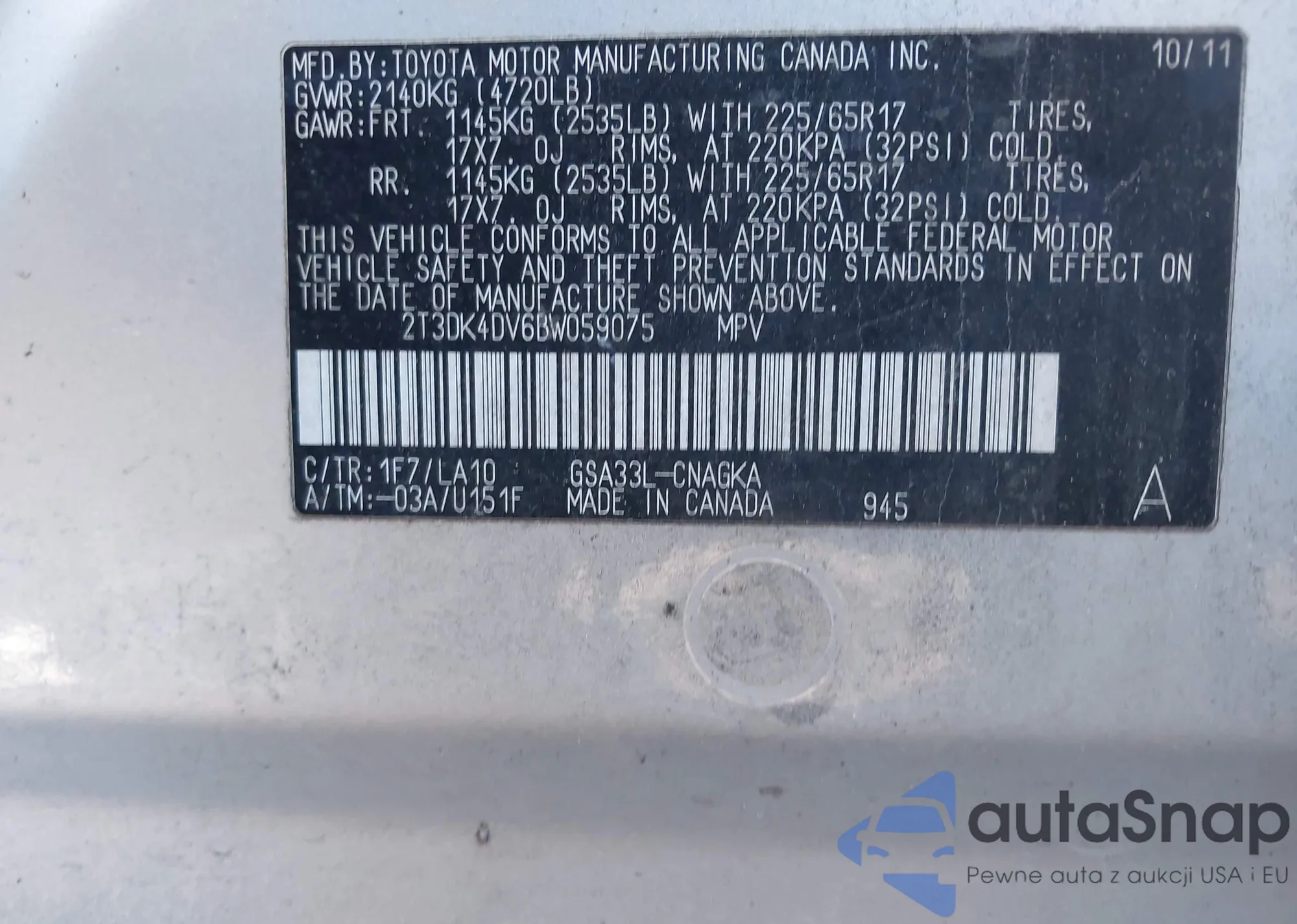 LOT: 43773022 VIN: KNAFW5A39B5325263