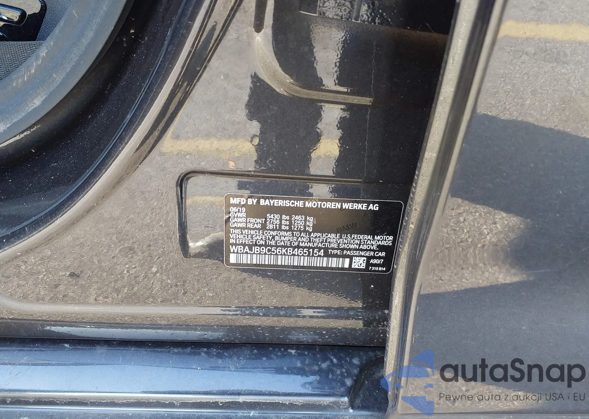 LOT: 43994385 VIN: WBAJB9C56KB465154