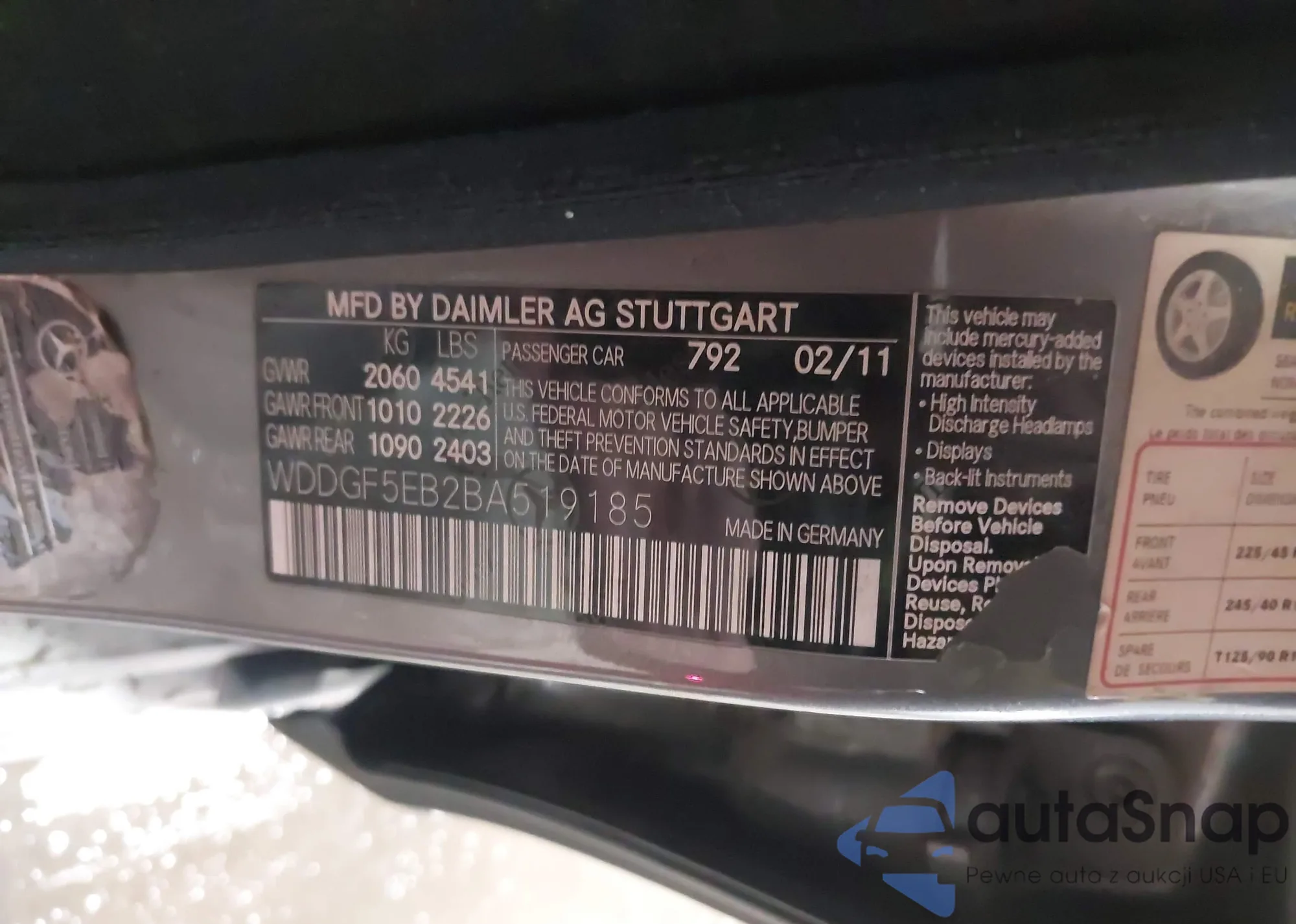 LOT: 43899408 VIN: WDDGF5EB2BA519185