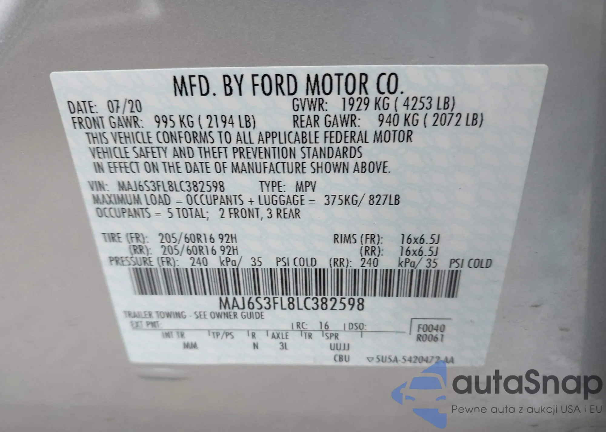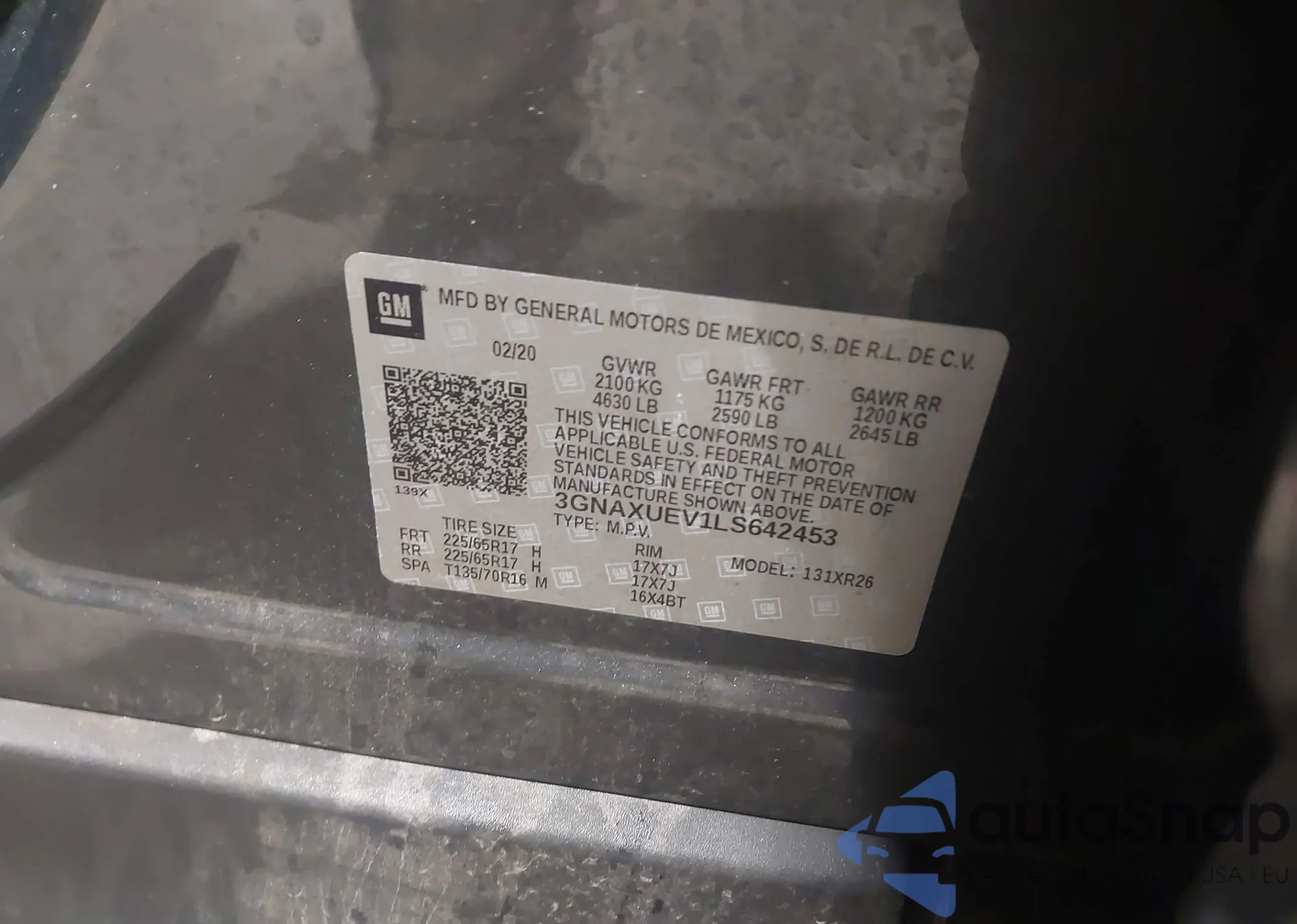LOT: 43940793 VIN: 3GNAXUEV1LS642453
