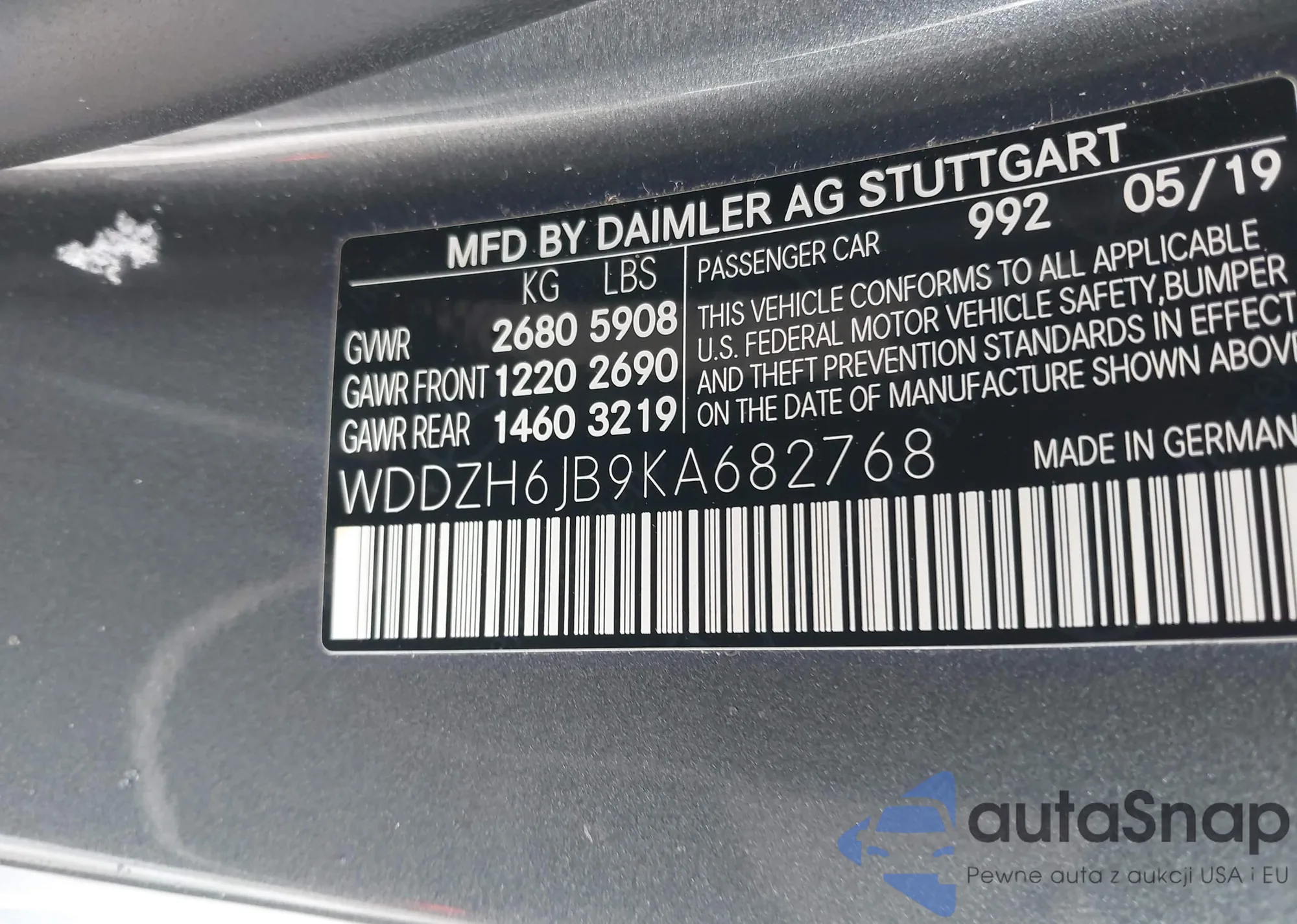 • VIN WDDZH6JB9KA682768