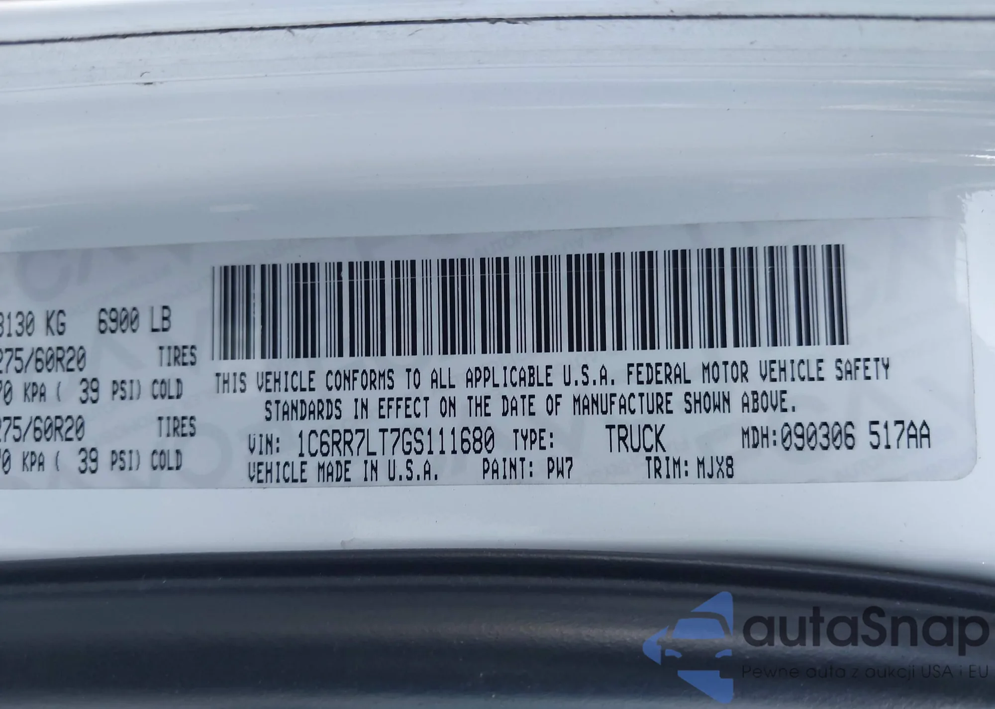 • VIN 1C6RR7LT7GS111680