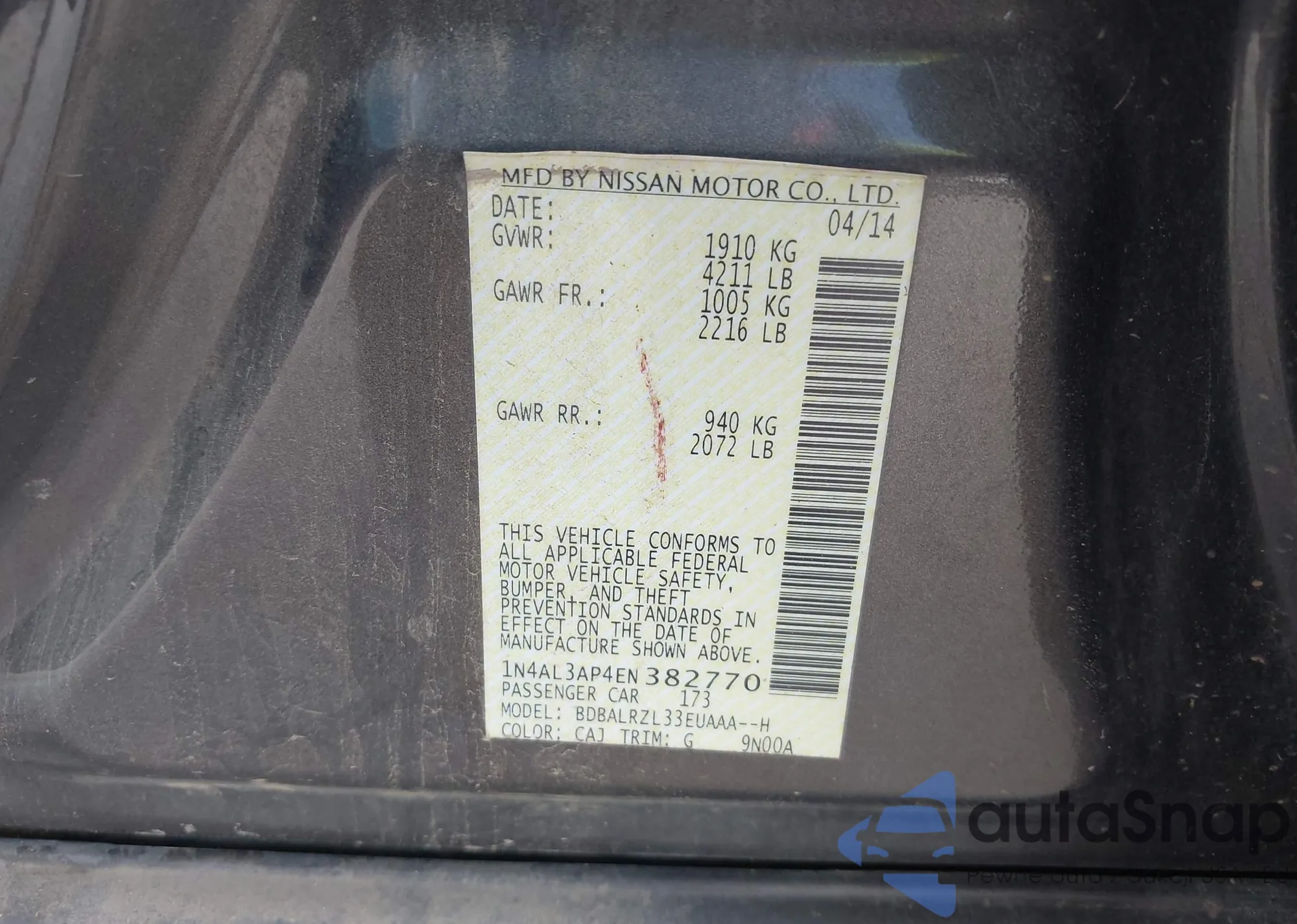 LOT: 43728124 VIN: 1N4AA6FV3NC501290