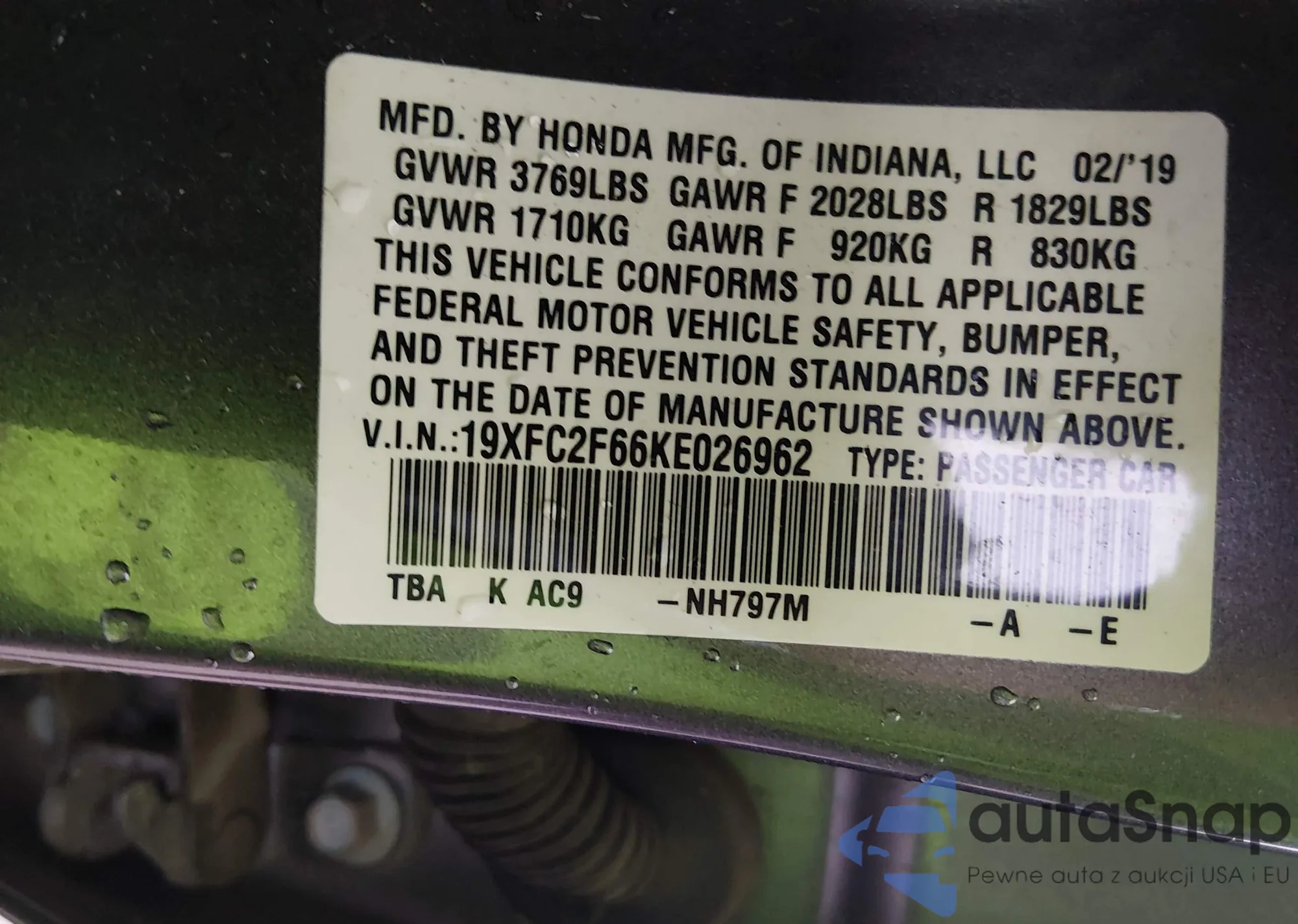 • VIN 19XFC2F66KE026962