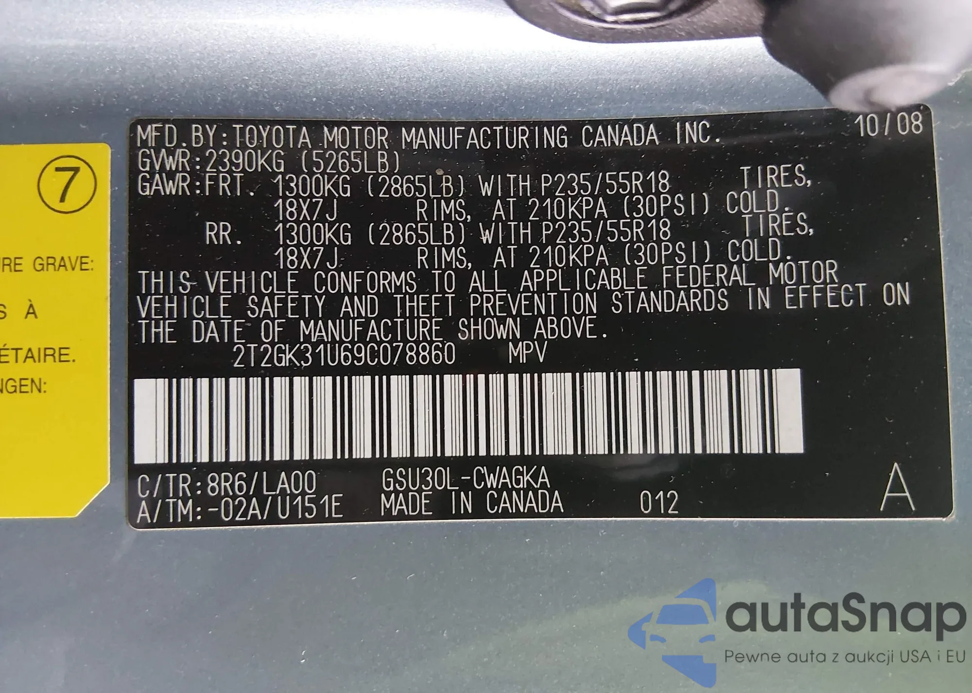 • VIN 5TDZA3EH8DS039894