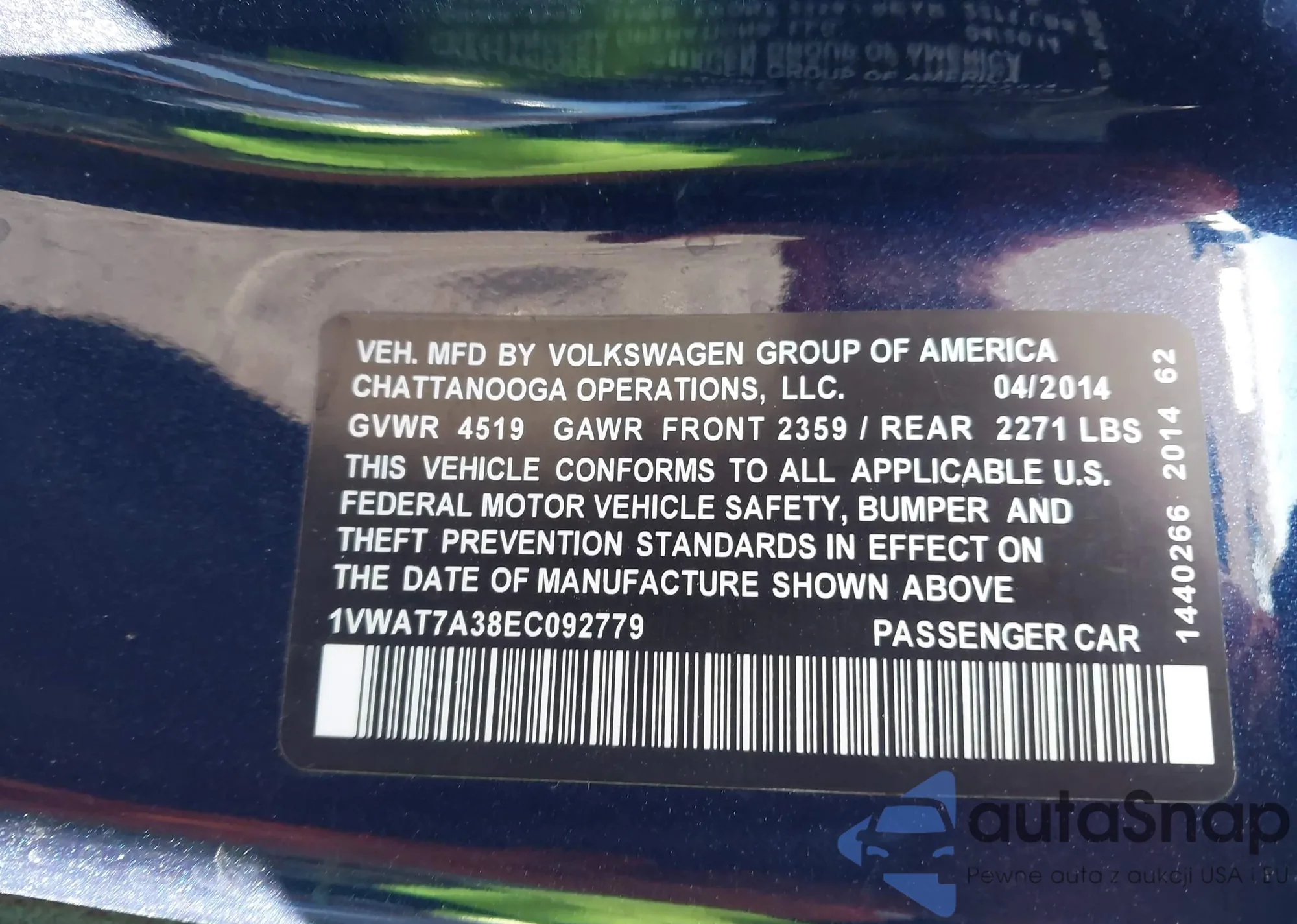 • VIN 1VWAT7A38EC092779