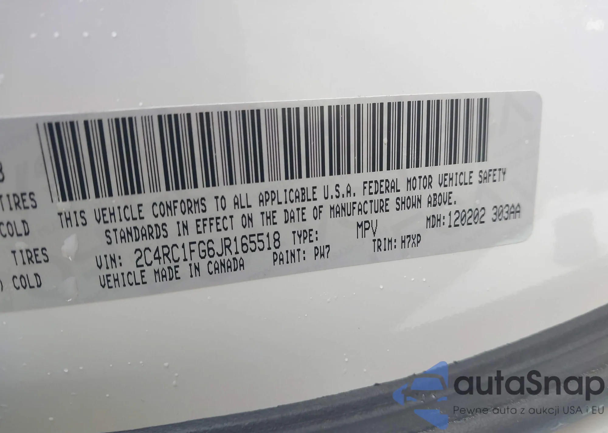 • VIN 2C4RC1FG6JR165518