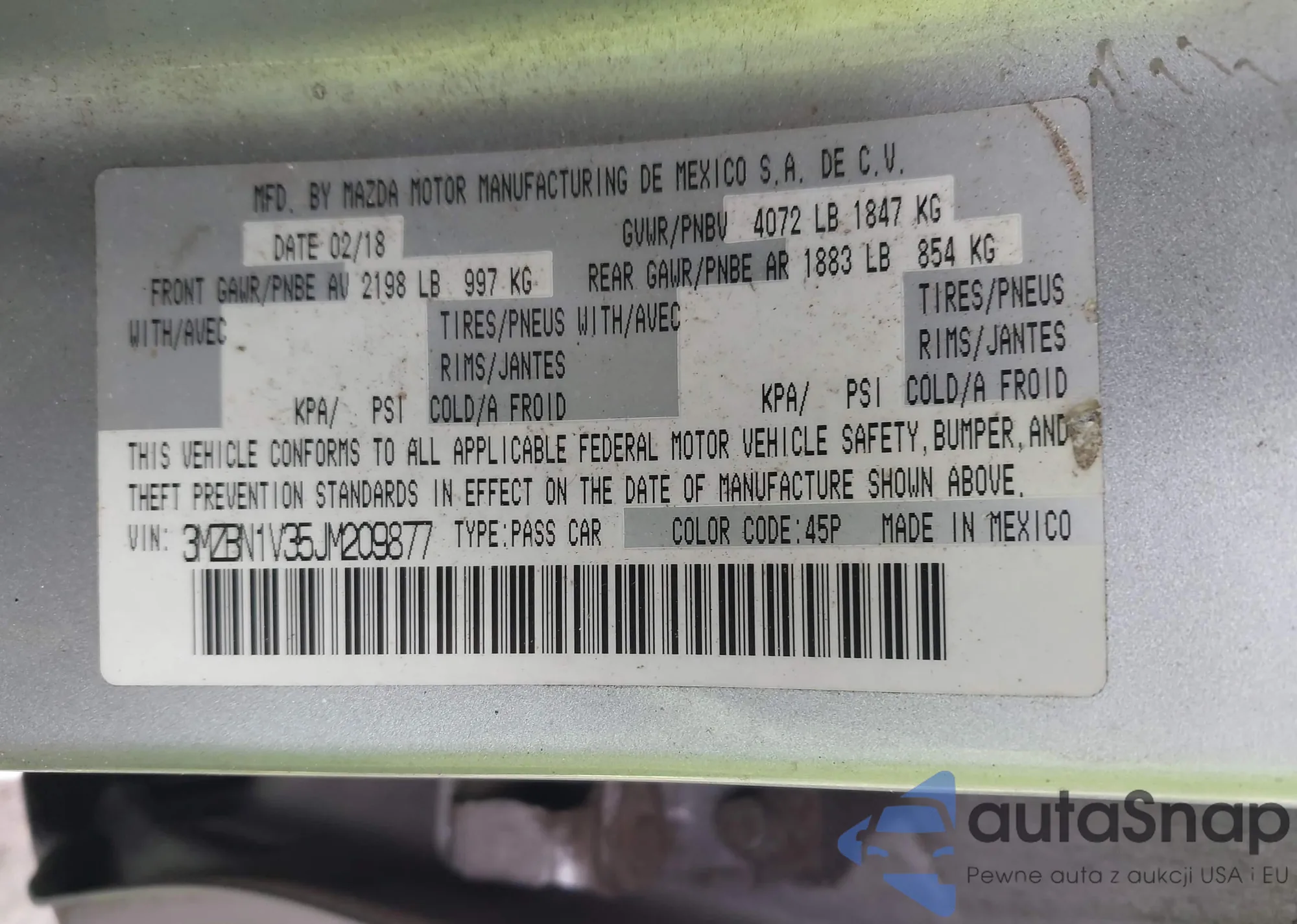 LOT: 43852908 VIN: JM3KE4CY1E0308098
