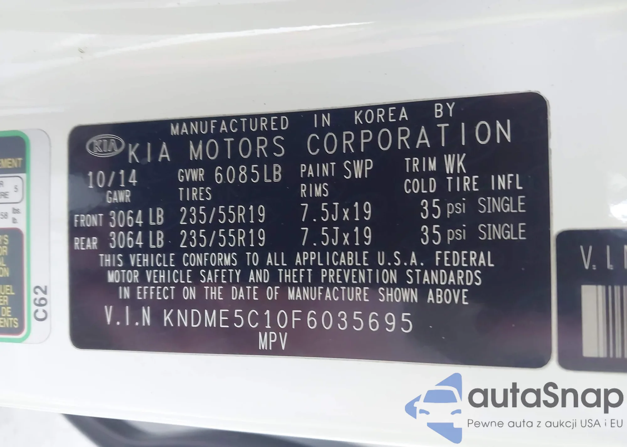 LOT: 43847220 VIN: KNDME5C10F6035695