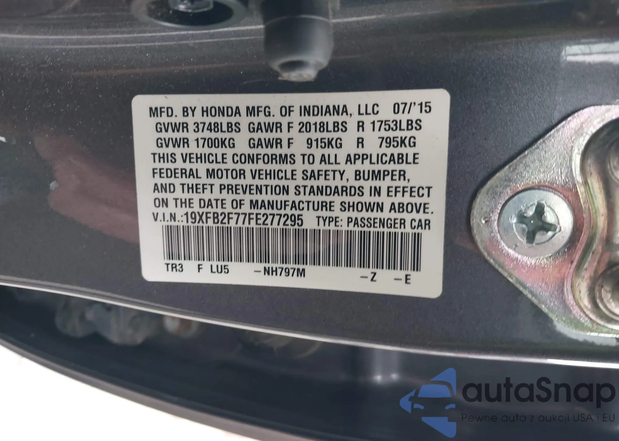 • VIN 19XFB2F77FE277295