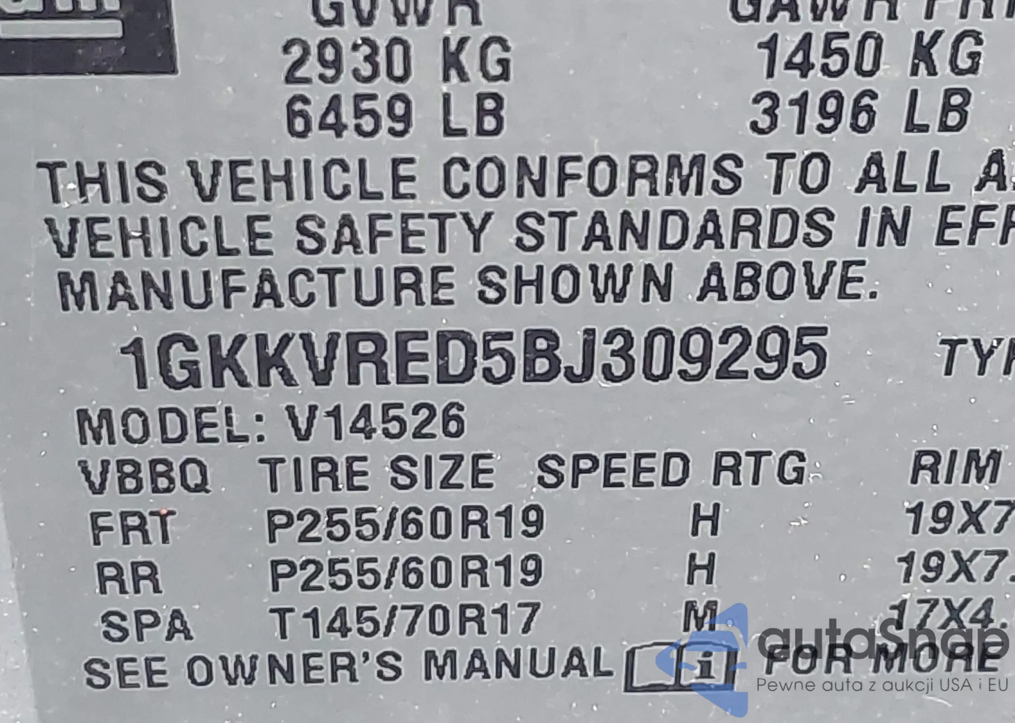 • VIN 1GKKVRED5BJ309295