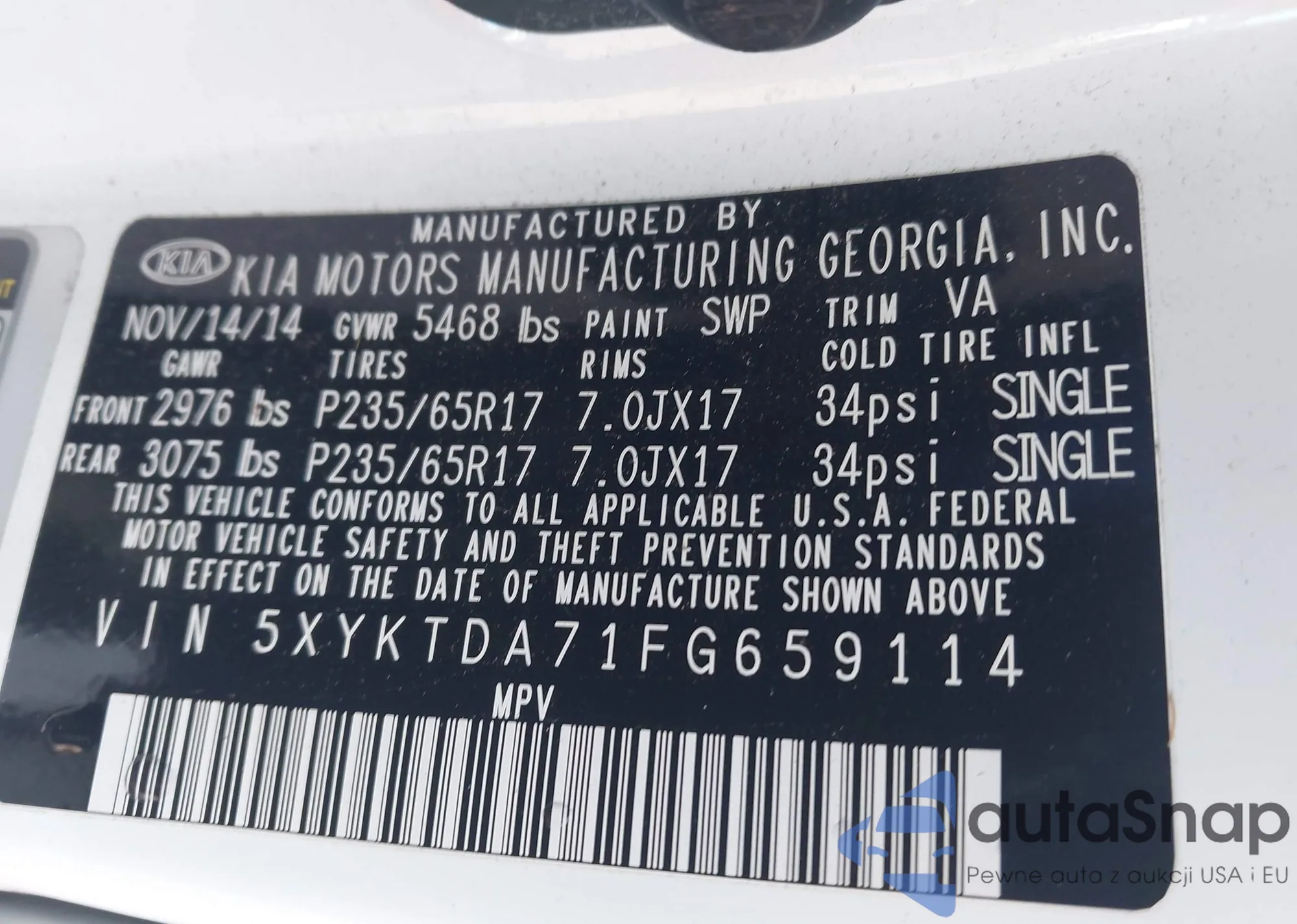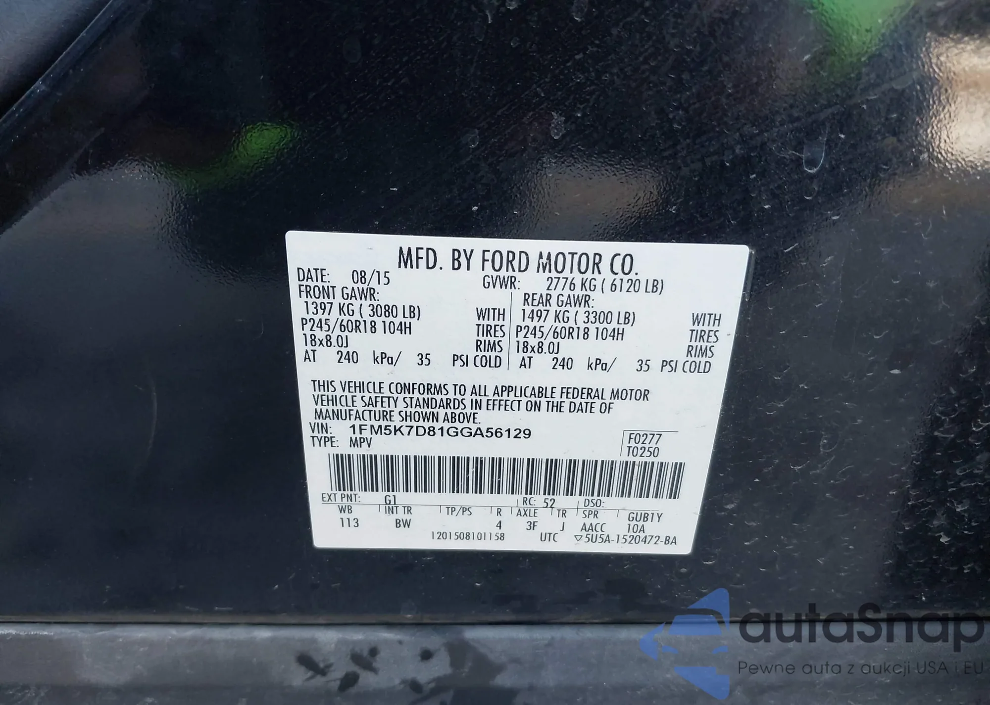 LOT: 43621651 VIN: 1FA6P8CF7F5314721