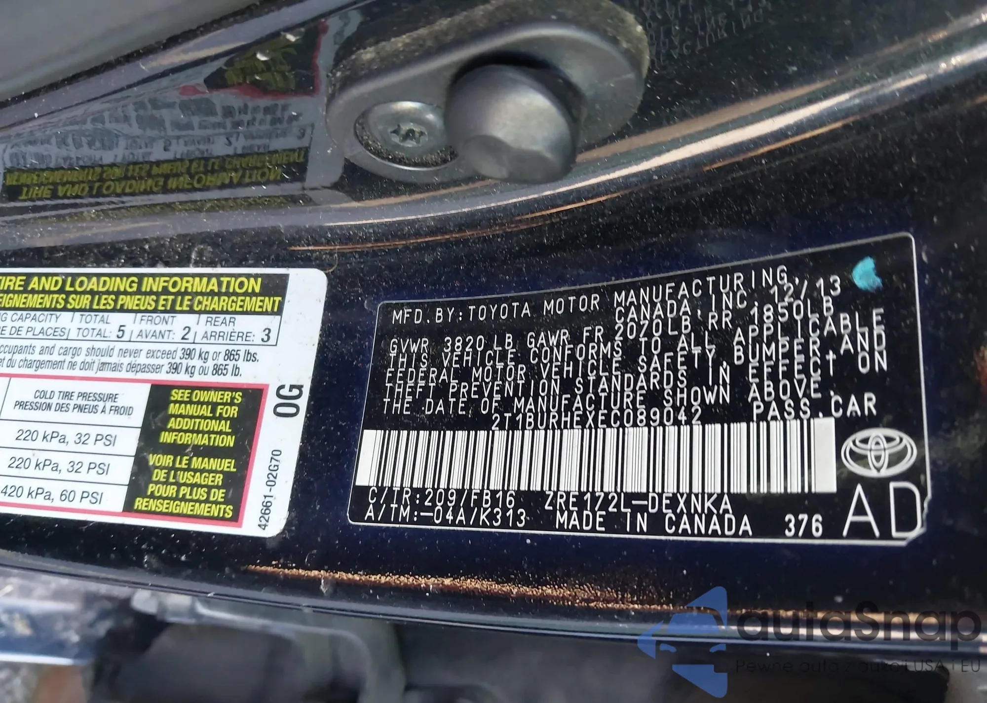 • VIN 4T1BF1FK2EU829590