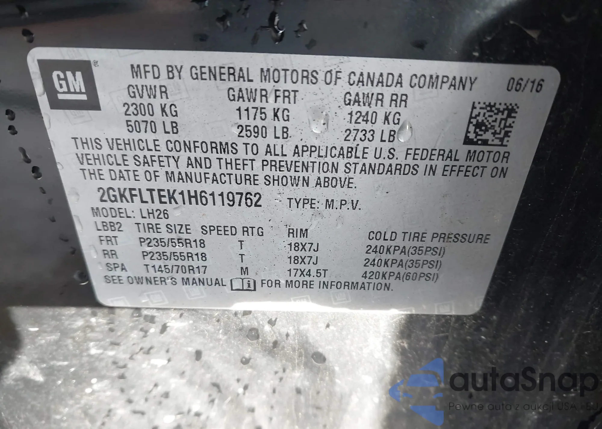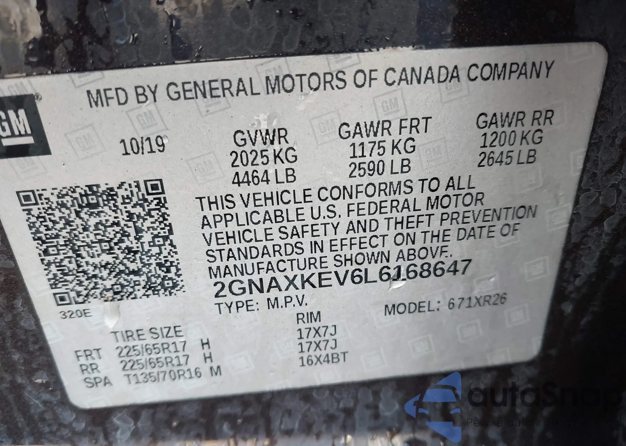 • VIN 2GNAXKEV6L6168647