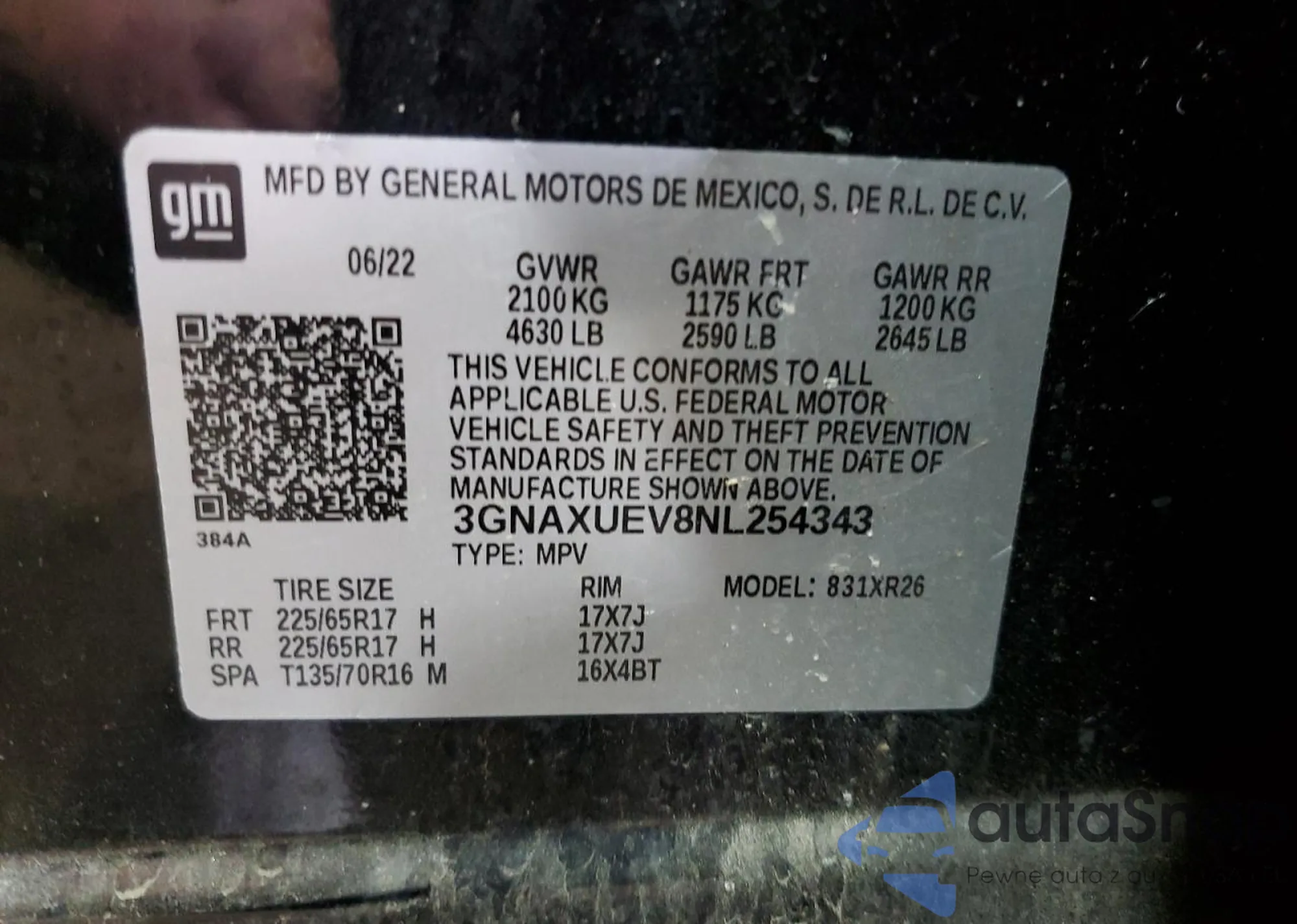 LOT: 90450265 VIN: 3GNAXUEV8NL254343