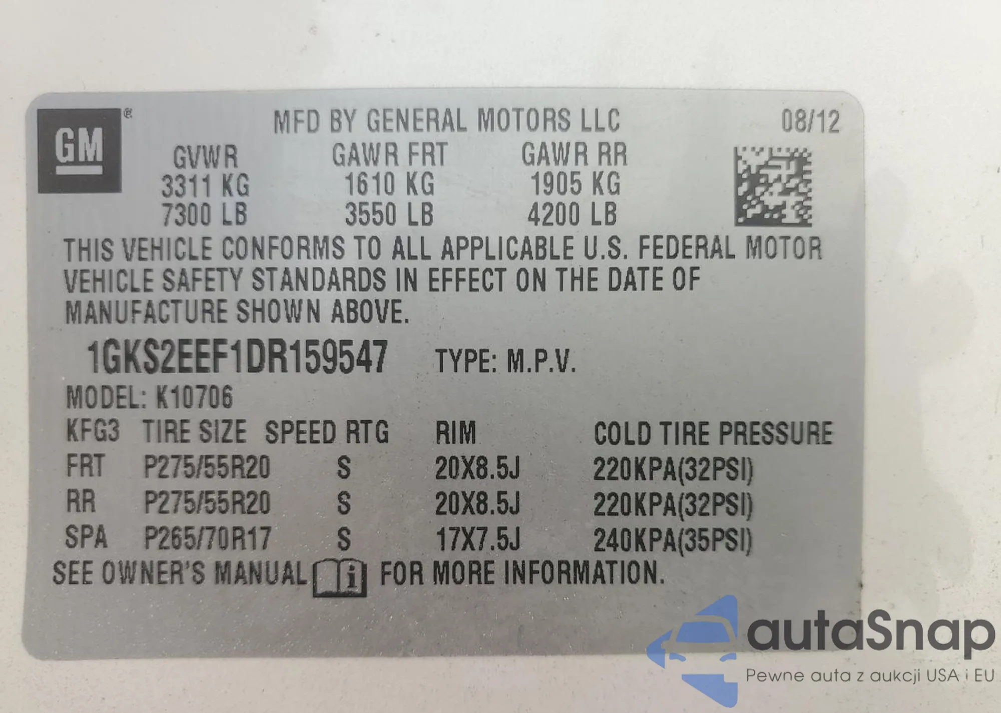 LOT: 93483955 VIN: 1GKS2EEF8BR210796