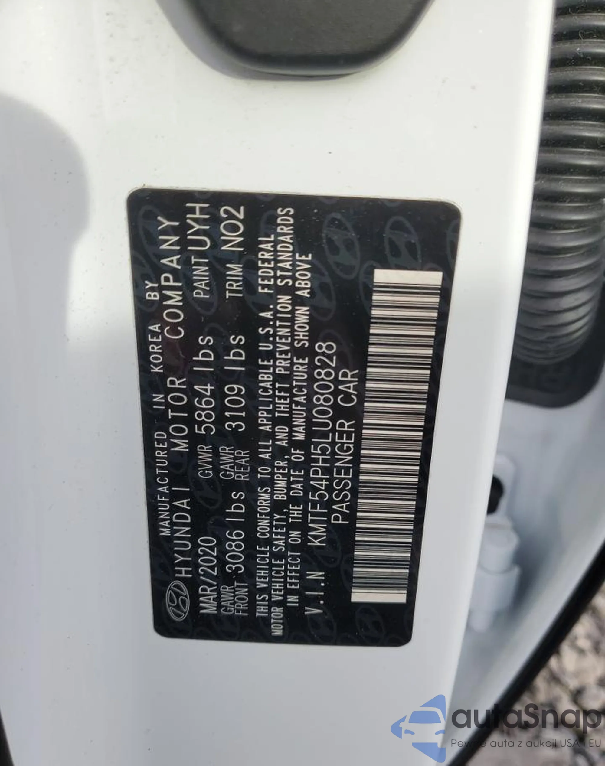 LOT: 93642475 VIN: KMTF54PH5LU080828