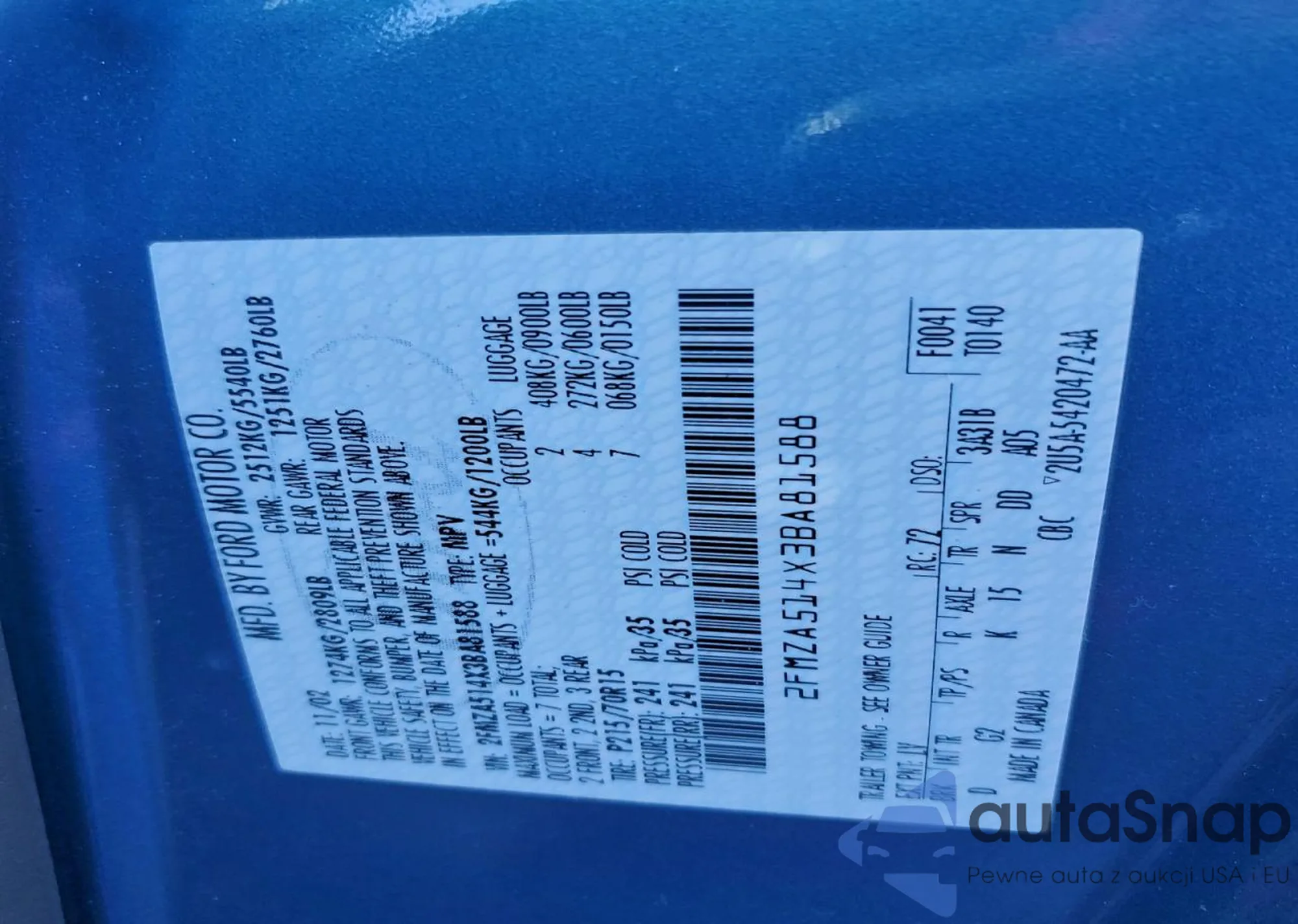 • VIN 2FMZA514X3BA81588
