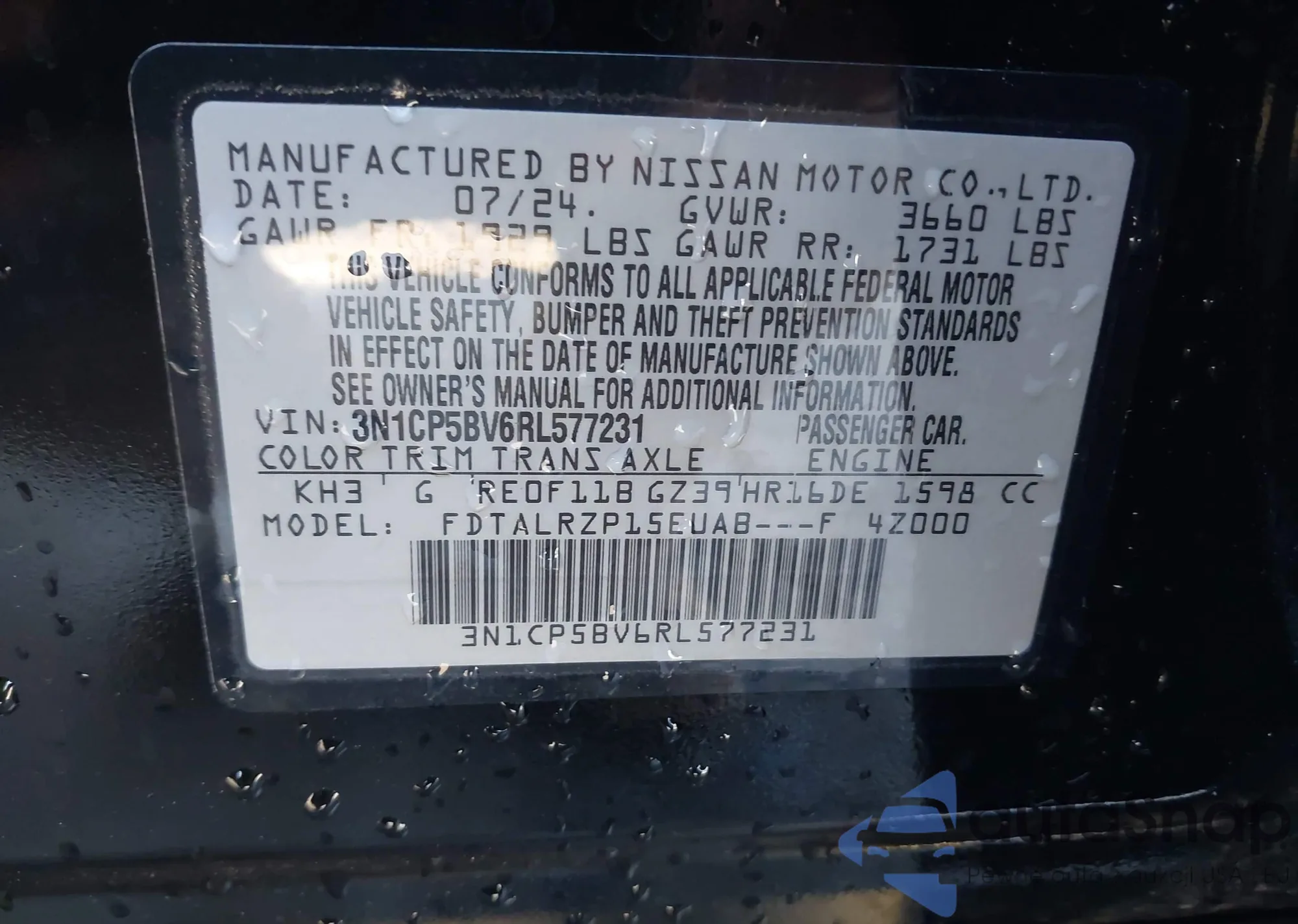 LOT: 43850306 VIN: 5UXKR0C56F0P16124